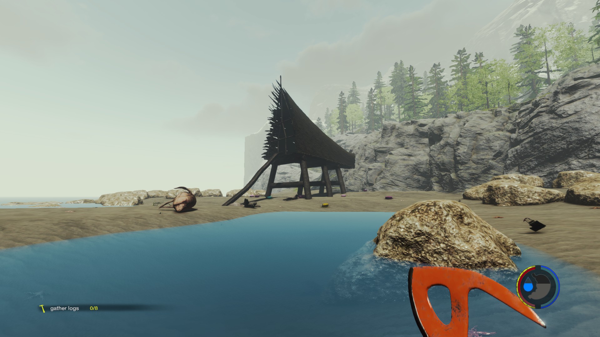 So: Auf dem Bild, dass ich geschickt habe sieht man Baumstümpfe und kleine, etwas dünnere Bäume die zu Sticks werden wenn man sie fällt. Diese kleinen Bäume sind aber aus Baumstümpfen entstanden