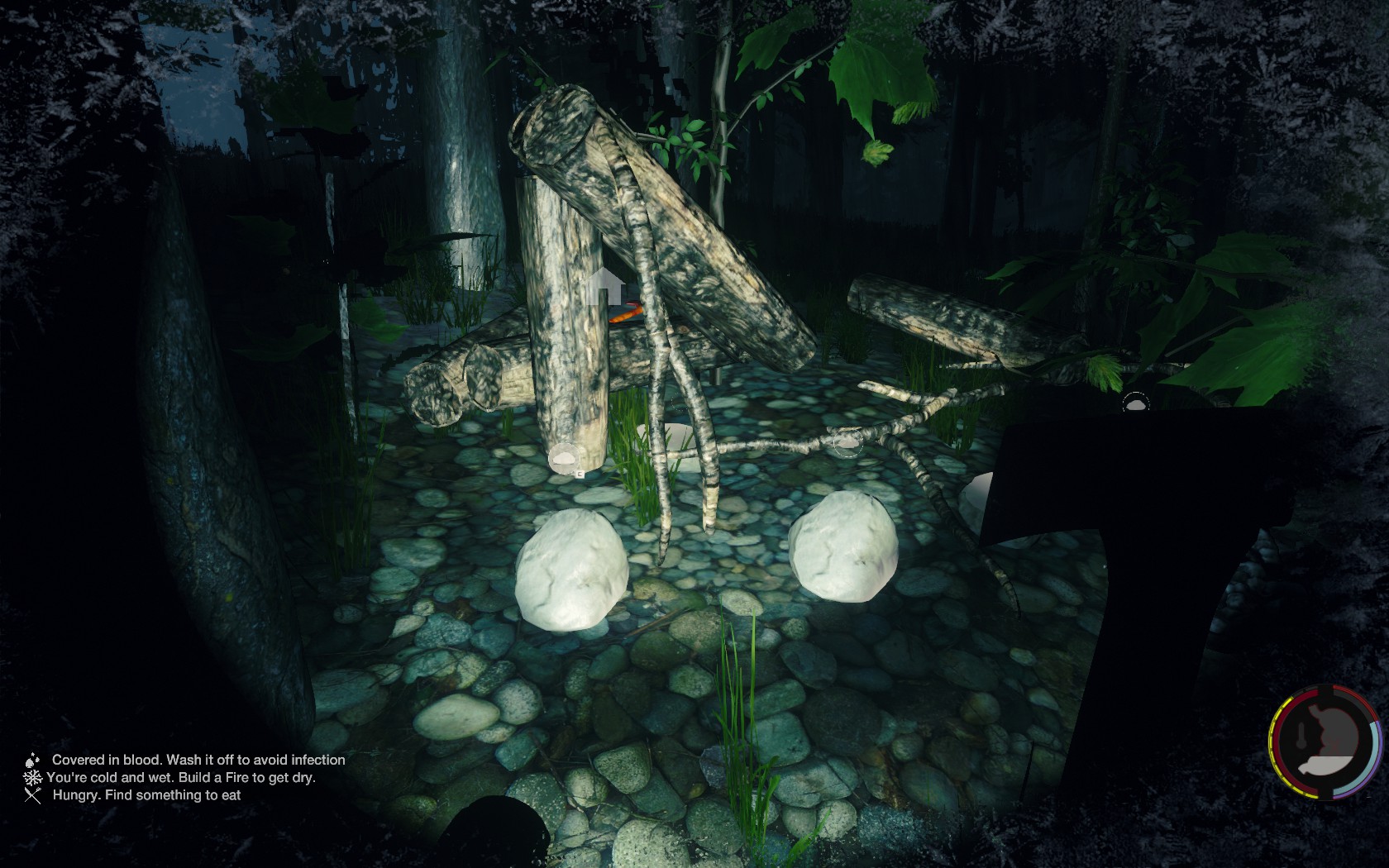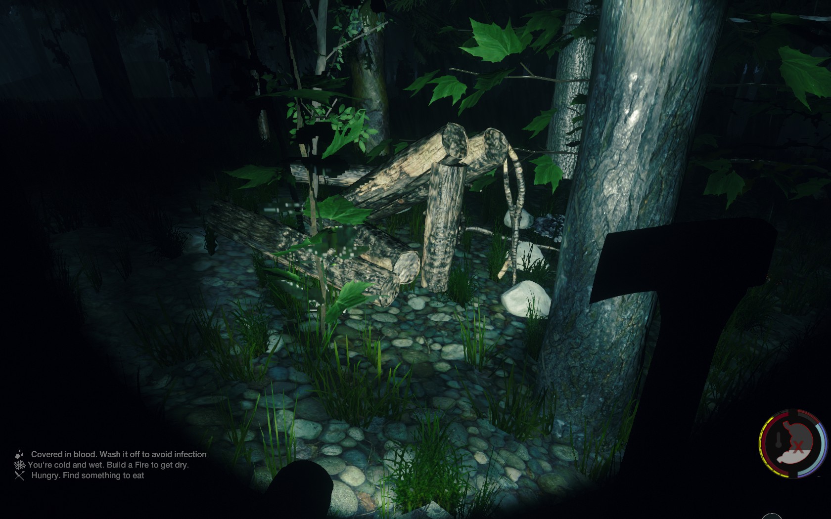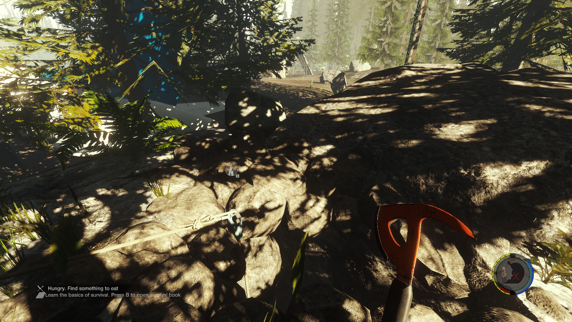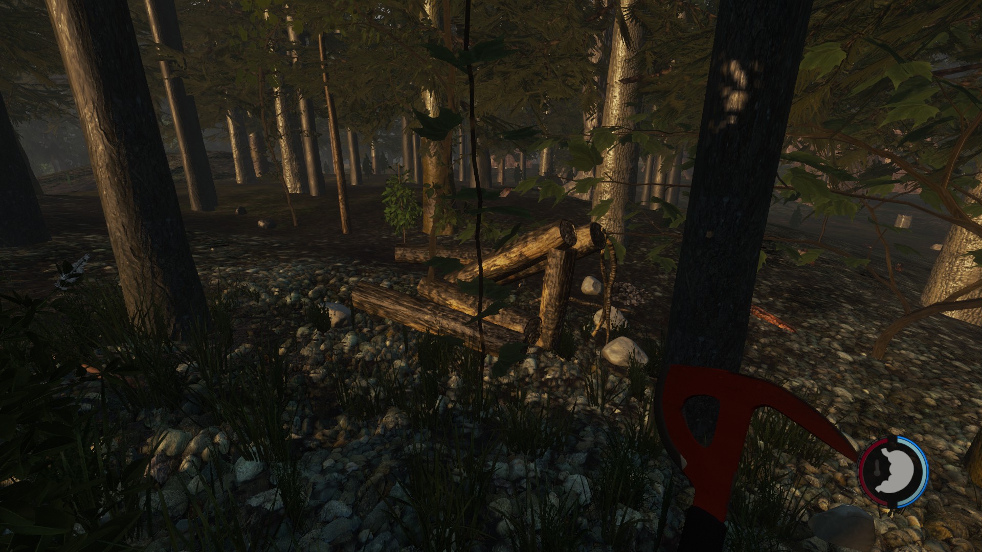 habe diesen verfallenden Unterschlupf mitten im Wald nähe des kleinen Sees mit dem dorf dran gefunden