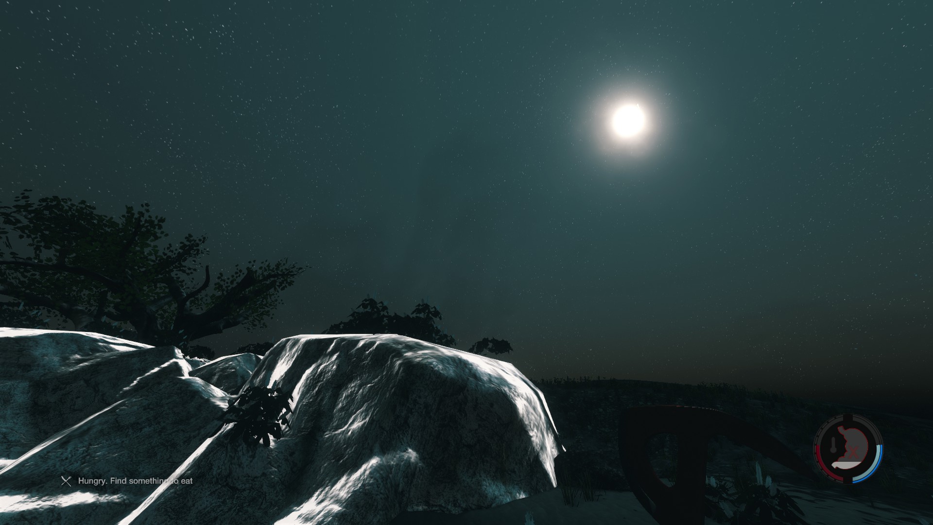 Ich hatte Hunger und mir war kalt, also benutzte ich das schon vorhandene Lagerfeuer wiedermal zum Wärmen und Luch braten. Die Anzeige des Häuschens war 40/82. Bergfest also.