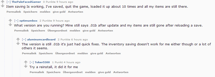 Laut englischen Berichten sollen die Items nun im Inventar bleiben. Es ist möglich, dass ihr das Spiel neuinstallieren müsst, damit die Speicherfunktion komplett funktioniert.