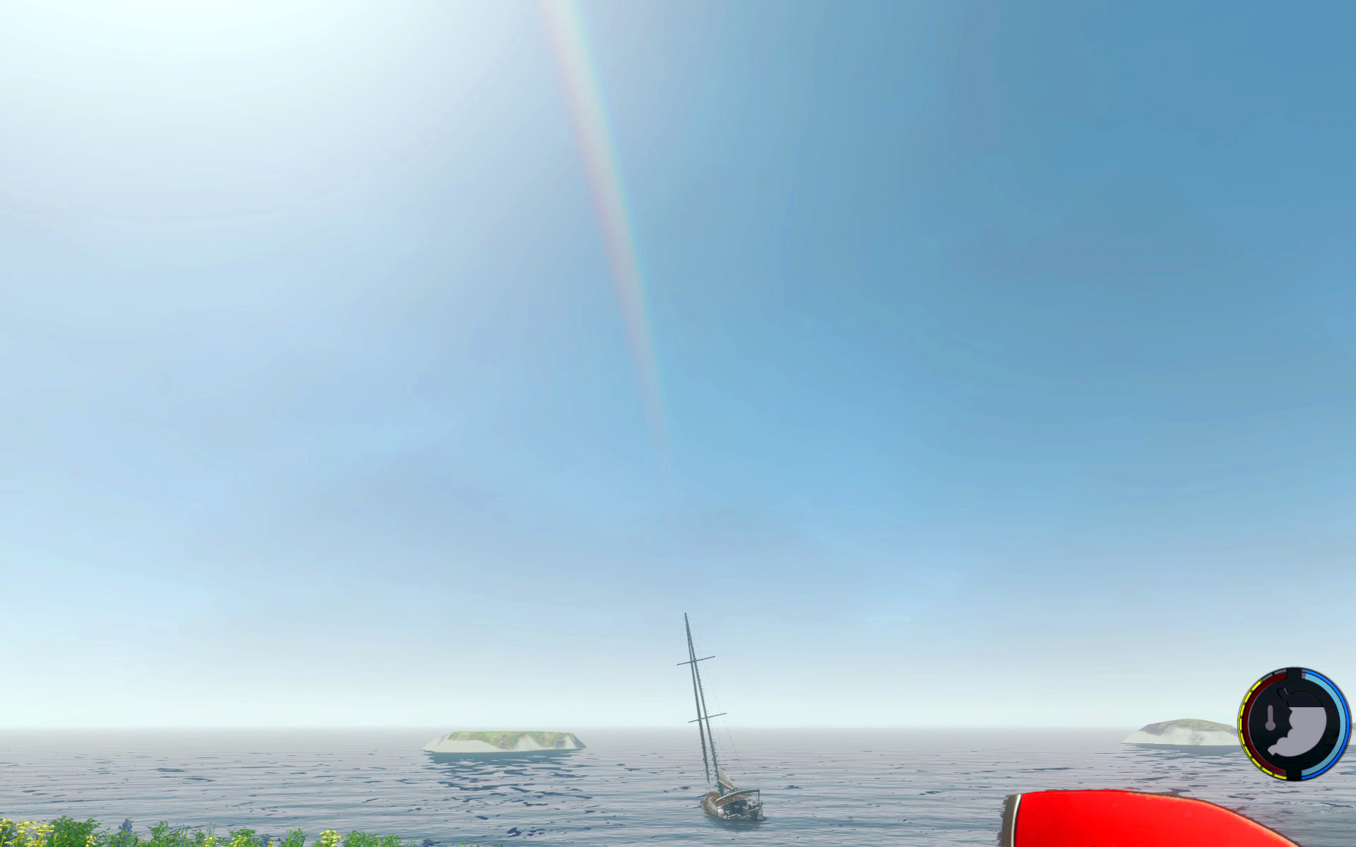 Wo finde ich das Boot nach dem Laden nun? Hey, normal zeigt ein Regenbogen doch zu einem Schatz, vielleicht ist damit mein "Schatz" als Segelboot gemeint....