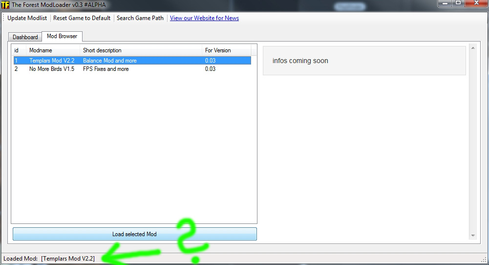 wenn alles richtig geklappt hat, steht dann ganz unten: Loaded Mod: [Templars Mod V2.2] im Modloader