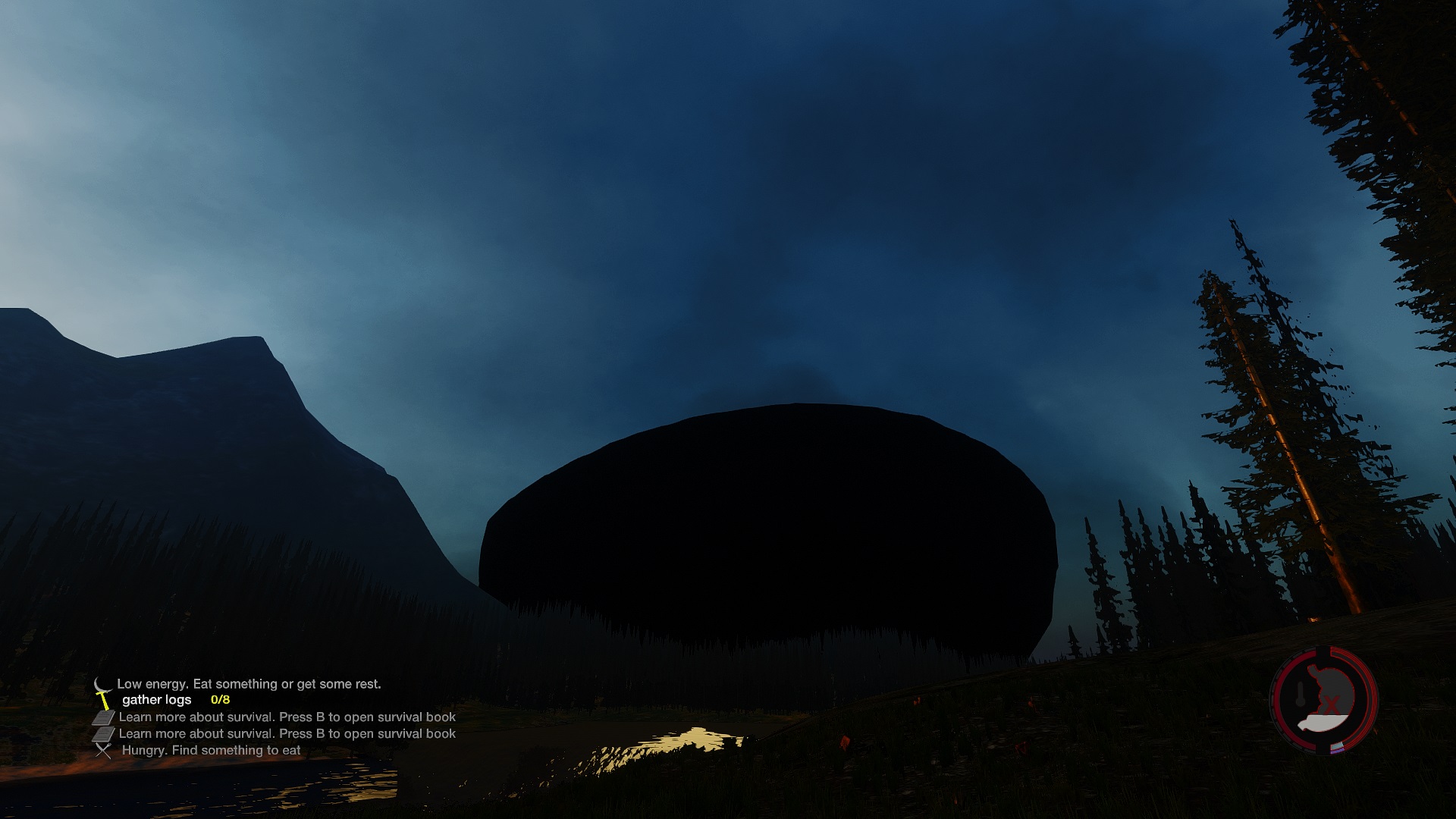 Joar @Dathura das ist - sagen wir mal - ein unerwünschter Nebeneffekt dieser Sache. Denn die Welt in The Forest besteht grob aus einer Art Kuppel und mit der - wie es Templar ausdrückte - Weitsicht, die bis zu 2km weit führen kann, sieht man genau solche Teile wie auch dann den "Rand" der Insel wo es einfach nur ins Nichts geht. Mach dir da keinen Kopf drüber und erquicke uns mit Screenshots wie diesen