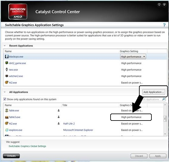 Über den AMD Catalyst Control Center zu den Application Profiles wo man über "Add Application..." in der unteren Liste dann TheForest.exe auswählen kann. Unten aufgetaucht, wählt man hier "Hohe Leistung" bzw. "High performance". Wenn hier jemand einen Screenshot und den genauen Weg zum AMD CCC sagen kann, bitte gerne