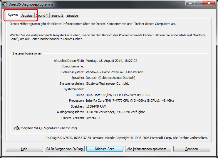 | » Wozu dient dxdiag und was tue ich damit? |