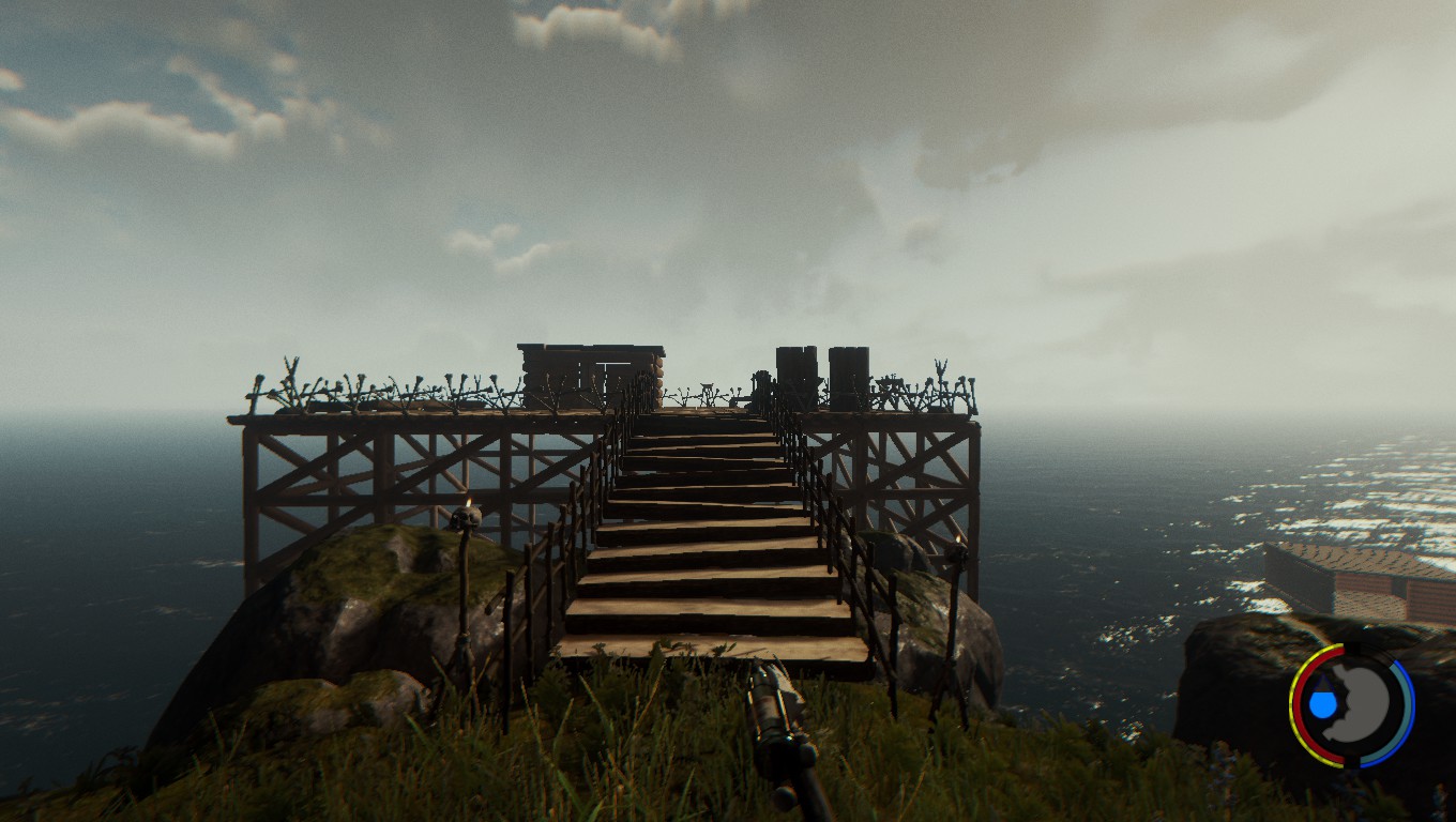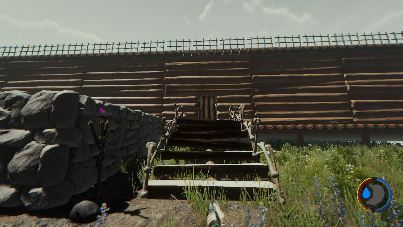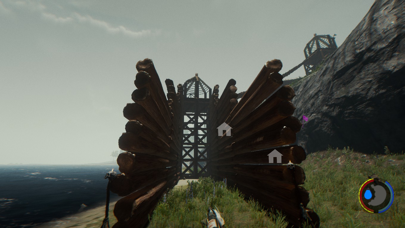 - "Wieso ausgerechnet der 'große Hügel'? - Der große Hügel bietet sehr viel Platz und ist sehr leicht überschaubar. Der perfekte Standort für einen zu verteidigenden Stützpunkt. Der Feind kann sich nur aus einer Richtung nähern, dem Fuße des Hügels.. so dachte ich zumindest, bis ich mit eigenen Augen sah, wie sich die berühmt berüchtigte Spinnendame die Felswand vom Strand bis hinter meine Verteidigungsmauern hocharbeitete.