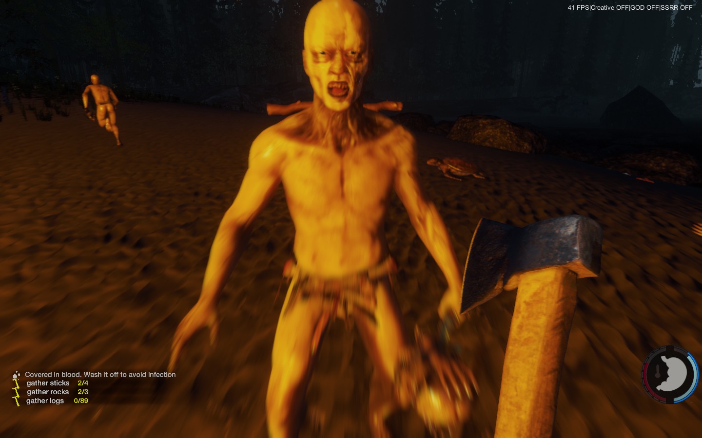 ) und, nun ja, es kam zur Auseinandersetzung mit meinen Freunden. Aber letzten Endes haben wir uns vertragen und meine beiden Freunde konnten sich mit der Frau bereden und haben mir verziehen. Dann haben wir uns verabschiedet und als Zeichen unserer Freundschaft habe ich mich nochmal mit meinen (früheren) Gegner gedrückt. Am Morgen kam dann aber ein etwas wütender Verehrer der besagten Frau, und da ist es mit mir durchgegangen. Die Wut über dieses Missverständnis war zu groß und so schlug ich ihm mit meiner Axt einmal quer durchs Gesicht, wobei er mir leid tat, als er mich verdutzt (oder bettelnd) ansah. Als er auf dem Boden lag, versorgte ich ihn noch. Danach brachte ich ihn weg, und er nahm die Probleme mit.