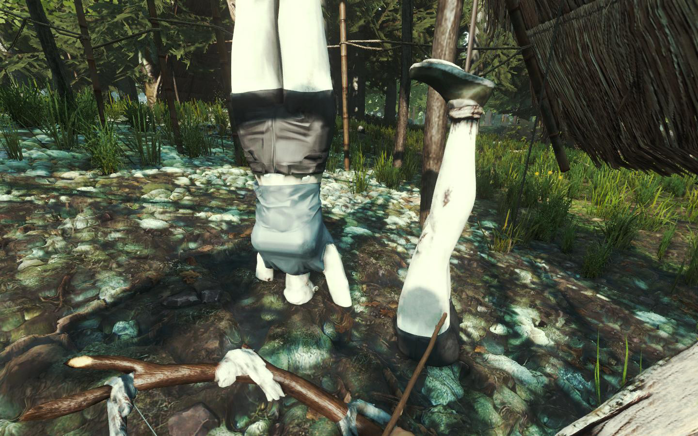 Man merkt an den Bildern, dass ich ein Freund des Schleichens und der Jagd bin. Jedoch liebe ich es auch mal blutig, da ich fast dauerhaft blutig herum laufe. Da treffe ich direkt auch ein Schlaflager, dass meine Interessen vereint. Die Bewohner haben ihren Kopf und Körper eh immer woanders, weswegen ich gleich mein neues Lager beziehe. Die früheren Bewohner kommen eh nicht wieder... Wir besuchen auch das Hauptdorf und sehen direkt, dass die Nachbarn auch einen Fetisch für blutiges Werk haben. Da haben wir ja eine Nachbarschaft mit gleichen Interessen: Jagen und Blut. Bloß jagen wir uns gegenseitig und meistens bluten hauptsächlich die Nachbarn