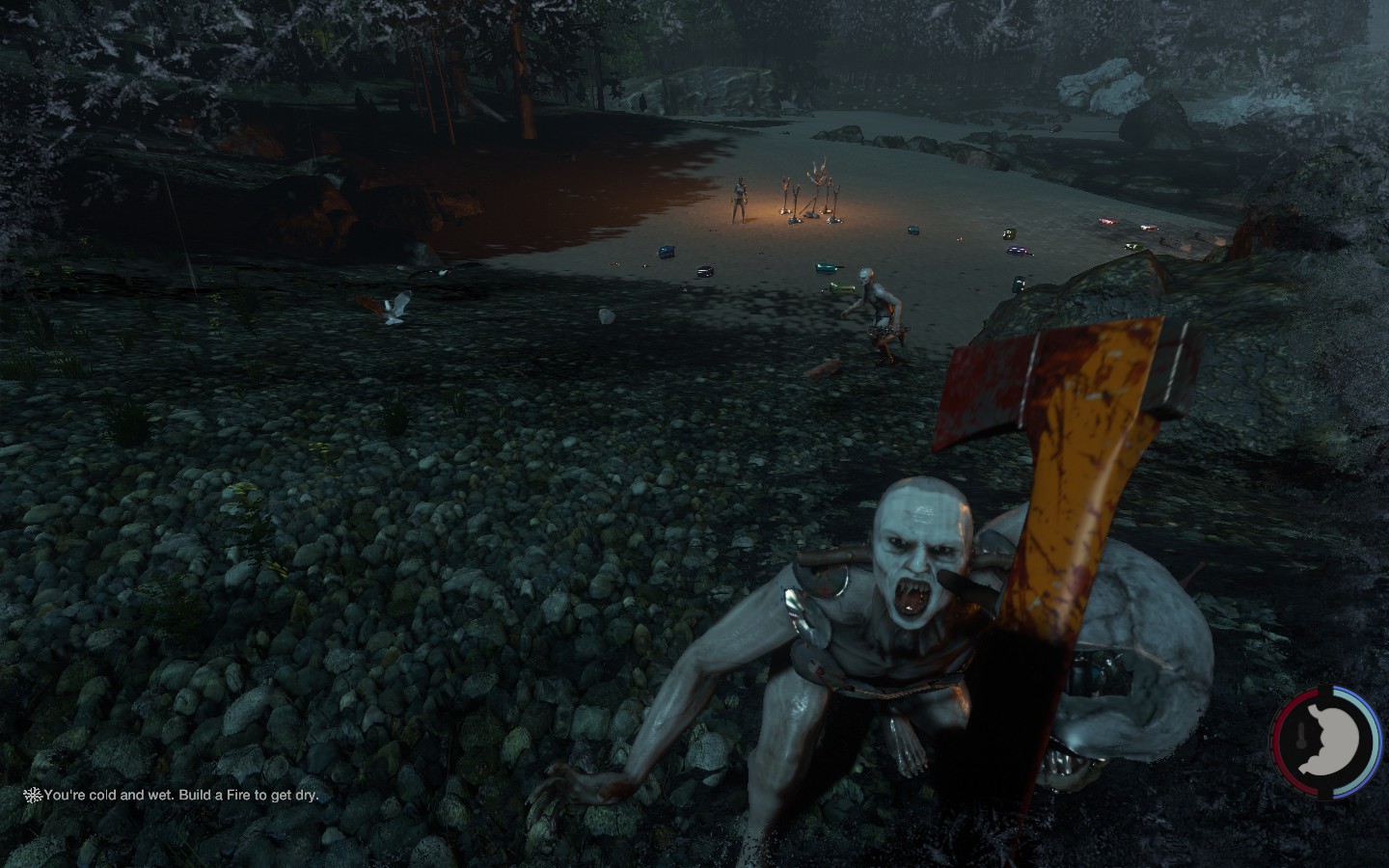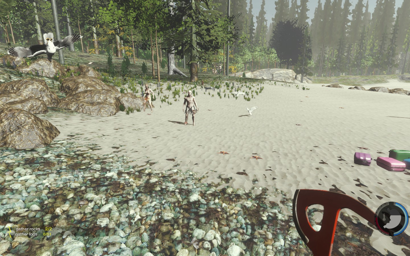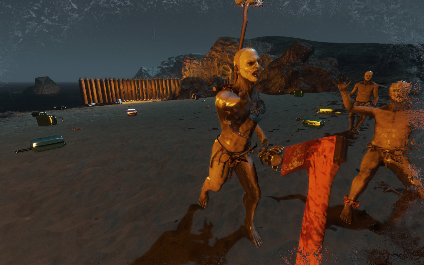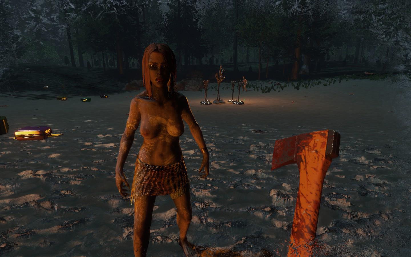 Da es wieder ein Update gab, habe ich (von mir aus) nochmal neu angefangen, und ich muss sagen: FUCK YOU TOO GAME. Ich war 10 Minuten unterwegs, war an meinem alten Strand angekommen um Neu-Noktarien in der neuen Version zu bauen. Die Nachbarn sind aber direkt zu Besuch gekommen, und dass zu 7, wie man auf den Bildern sieht. Ein paar nette Bildchen des neuen Weibs der Kannibalen hab ich auch, wobei die Brustregion noch einen Aufschub bekommen hat :D Also mein Tipp: Wenn man einsam ist auf der Insel, lieber den Rotschopf entführen anstatt die Schwarzhaarige ;D Ansonsten muss ich sagen, dass es in den nächsten Tagen wieder was gibt, nachdem ich (leider gottes mit Creative) alles wieder auf dem Stand von vorher hatte :/ Und dann noch ein Bild von den super muskeln- und adern bepackten Armen des Charakters, unglaublich wie hart der trainiert :D Aber im Ernst, man sieht wie die Adern im Schatten und im Licht aussehen, und meiner Meinung nach ist das ein bisschen krass, wie definiert die sind.