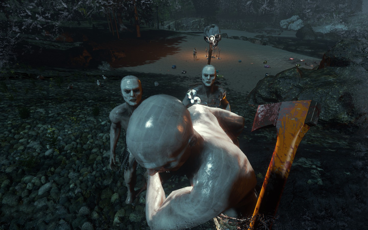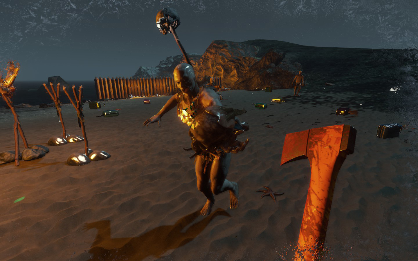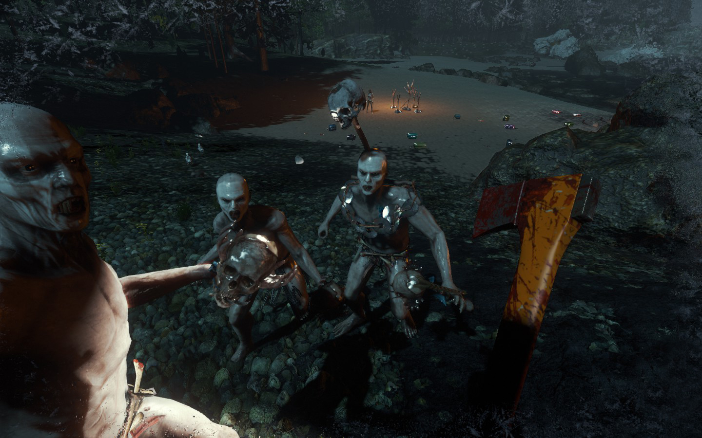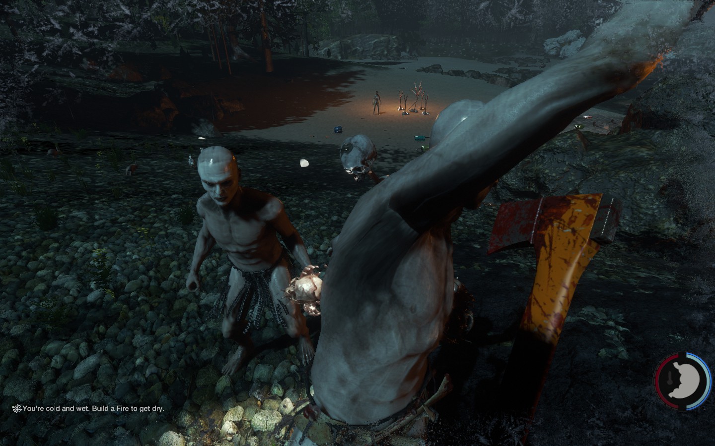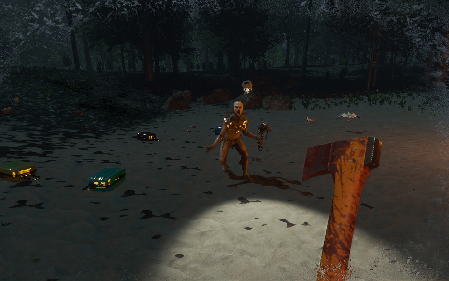 Da es wieder ein Update gab, habe ich (von mir aus) nochmal neu angefangen, und ich muss sagen: FUCK YOU TOO GAME. Ich war 10 Minuten unterwegs, war an meinem alten Strand angekommen um Neu-Noktarien in der neuen Version zu bauen. Die Nachbarn sind aber direkt zu Besuch gekommen, und dass zu 7, wie man auf den Bildern sieht. Ein paar nette Bildchen des neuen Weibs der Kannibalen hab ich auch, wobei die Brustregion noch einen Aufschub bekommen hat :D Also mein Tipp: Wenn man einsam ist auf der Insel, lieber den Rotschopf entführen anstatt die Schwarzhaarige ;D Ansonsten muss ich sagen, dass es in den nächsten Tagen wieder was gibt, nachdem ich (leider gottes mit Creative) alles wieder auf dem Stand von vorher hatte :/ Und dann noch ein Bild von den super muskeln- und adern bepackten Armen des Charakters, unglaublich wie hart der trainiert :D Aber im Ernst, man sieht wie die Adern im Schatten und im Licht aussehen, und meiner Meinung nach ist das ein bisschen krass, wie definiert die sind.
