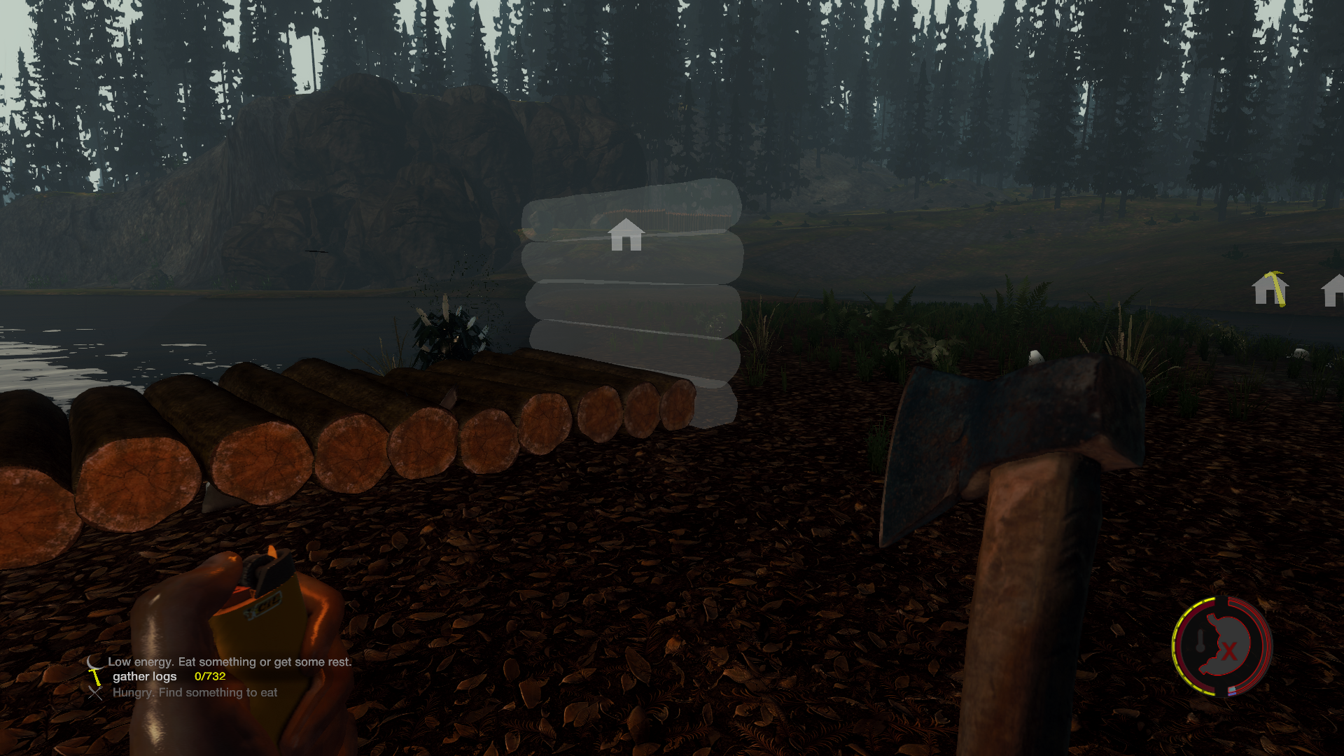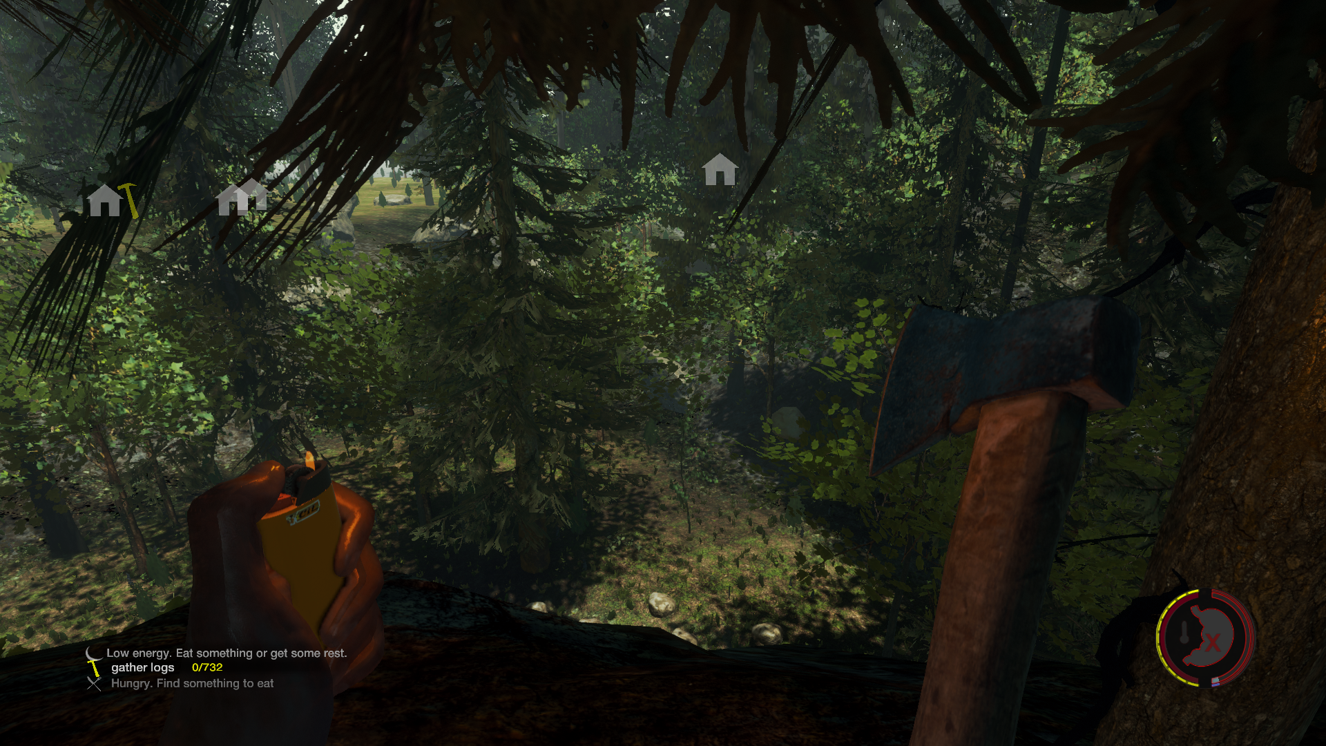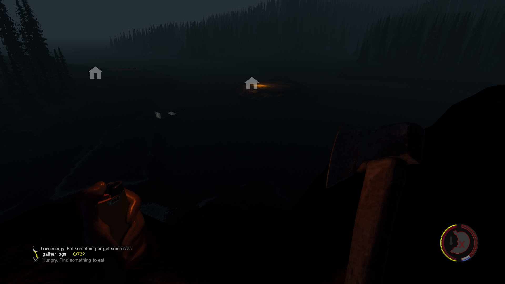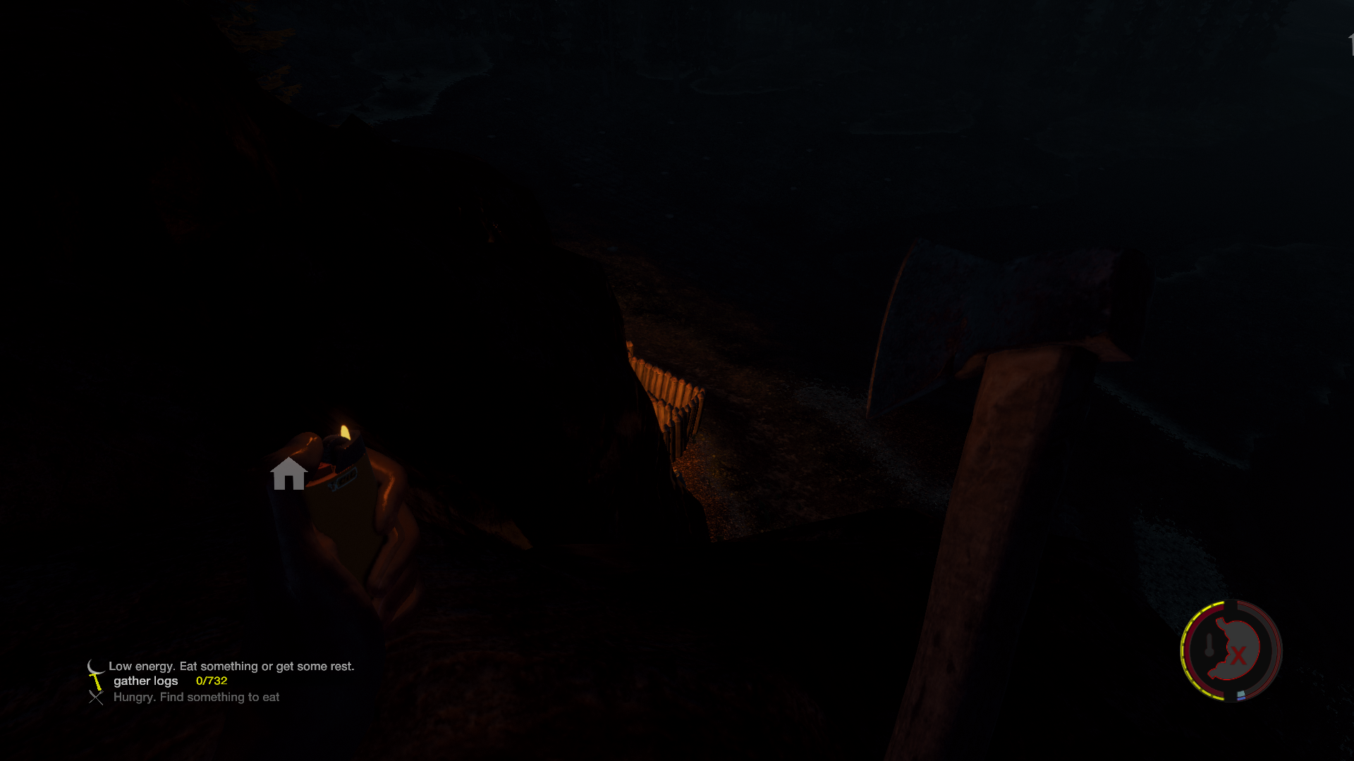 Auf dem Weg dorthin bin ich im Dunkeln in irgendwas reingelaufen und das Feuerzeug war gerade aus.