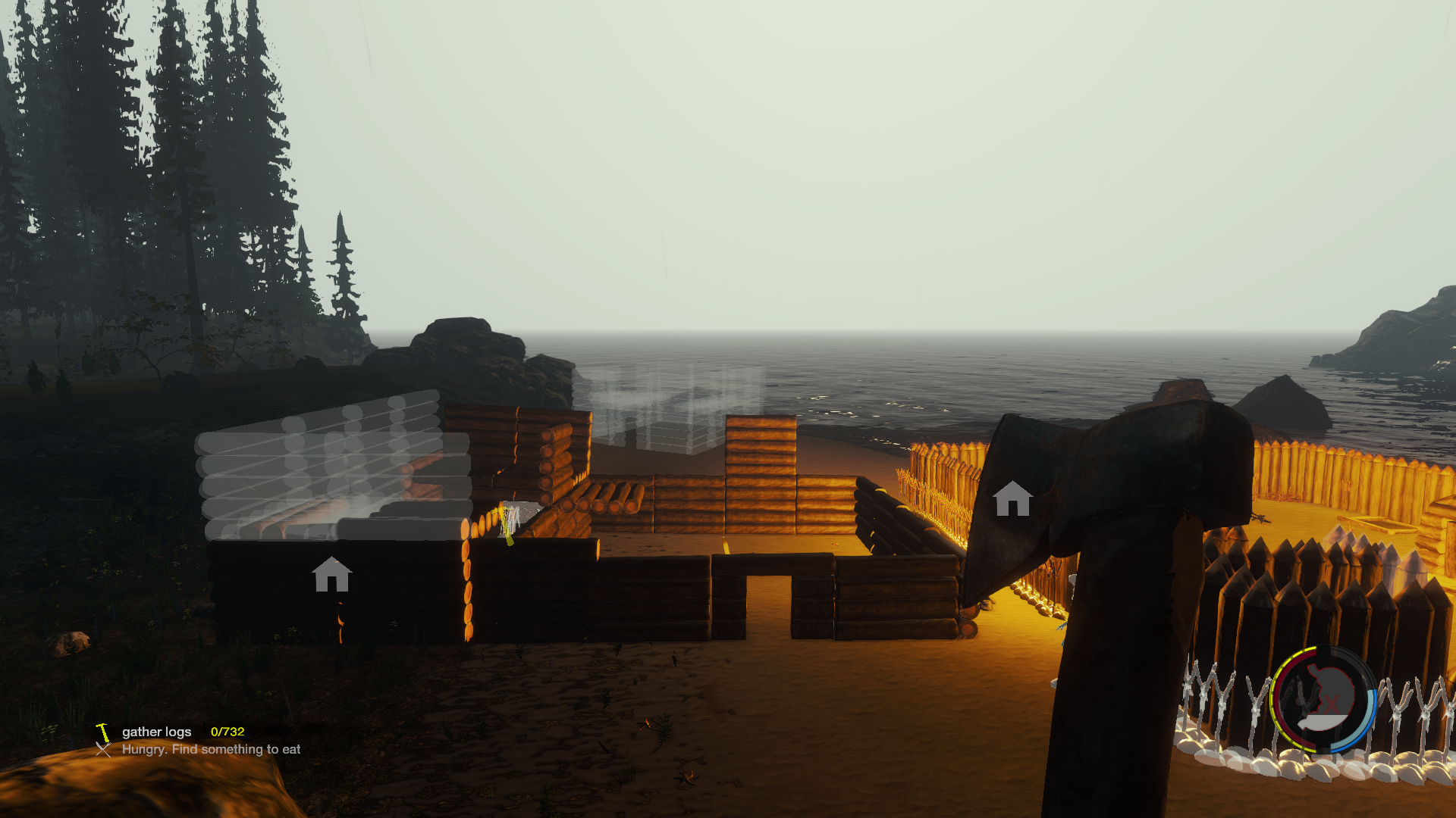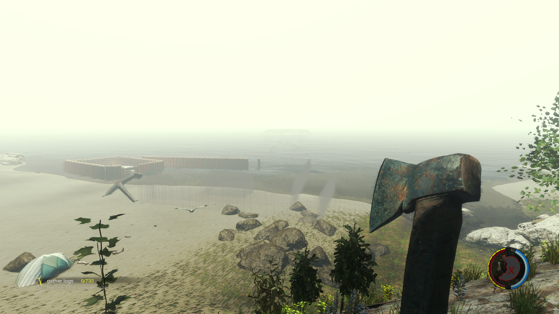 Zaun fertig, screenshots gemacht und wieder zurück zu meiner Festung in der Bucht der Segelyacht.