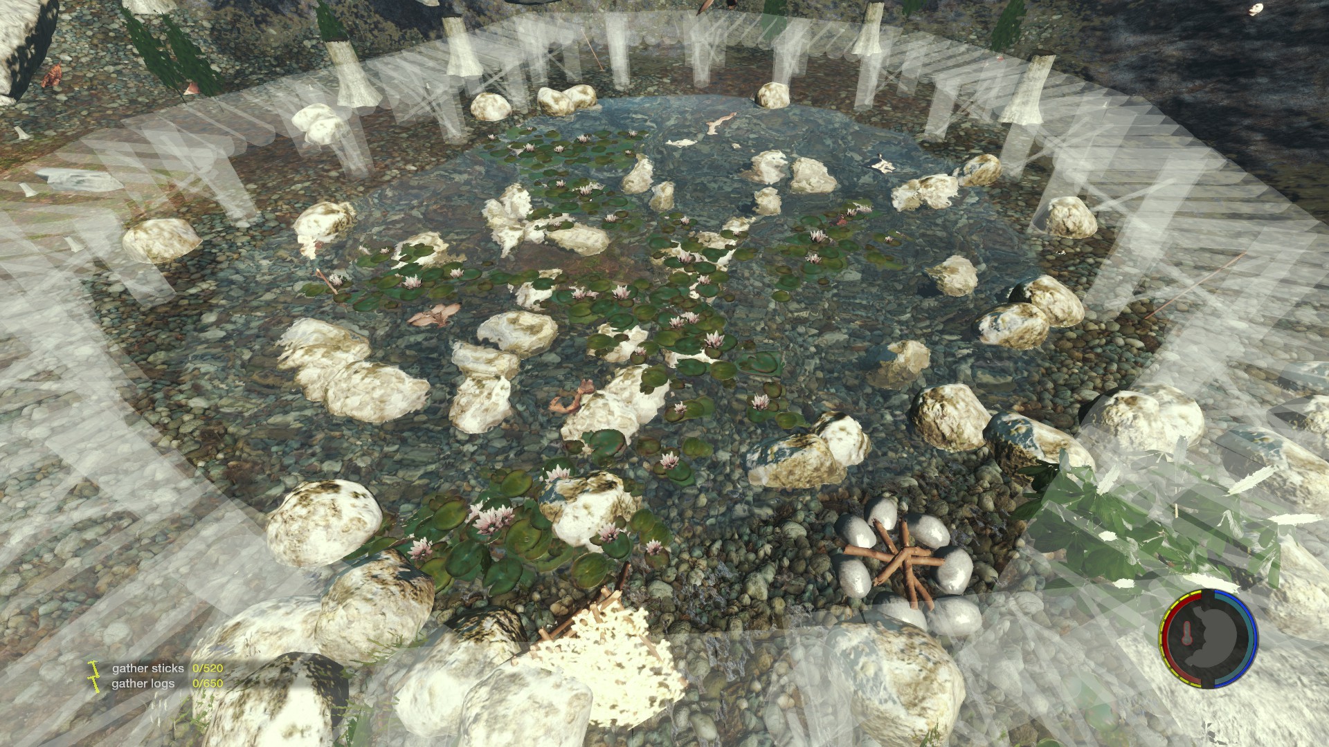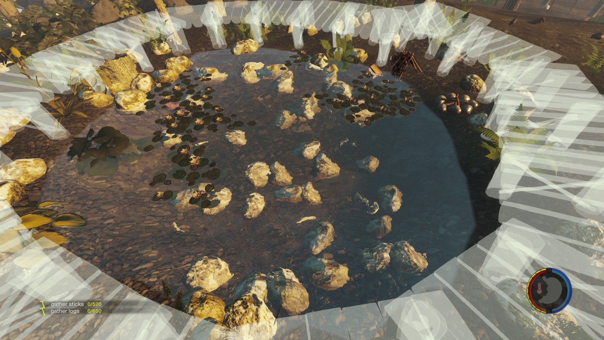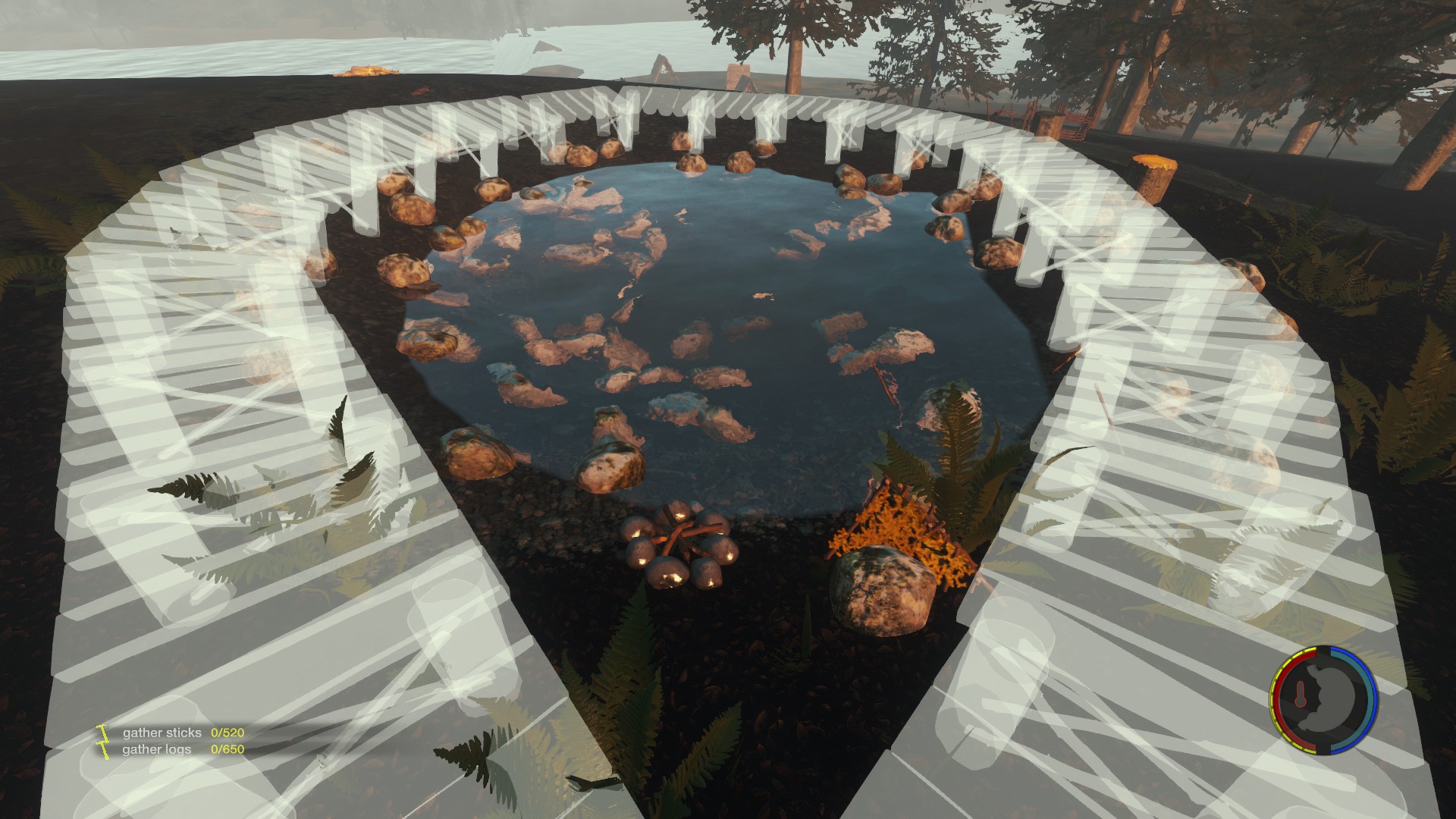... nach dem neu-implementierten feature, daß man seine zusammengezimmerten behausungen, mit nur einem schlag wieder zunichte machen kann/könnte, bin ich diesmal ganz pragmatisch und effizient an meine basen rangegangen, einfach alle teiche welche frische fische enthalten, die hab ich mit blueprints-plattformen eingezäunt, dem kleinsten unterschlupf und einem lagerfeuer bestückt, so kann ich mich ganze tage und nächte, frei nach dem motto "fischers fritz fischt frische fische, frische fische fischt fischers fritz" begeistern.... ^^