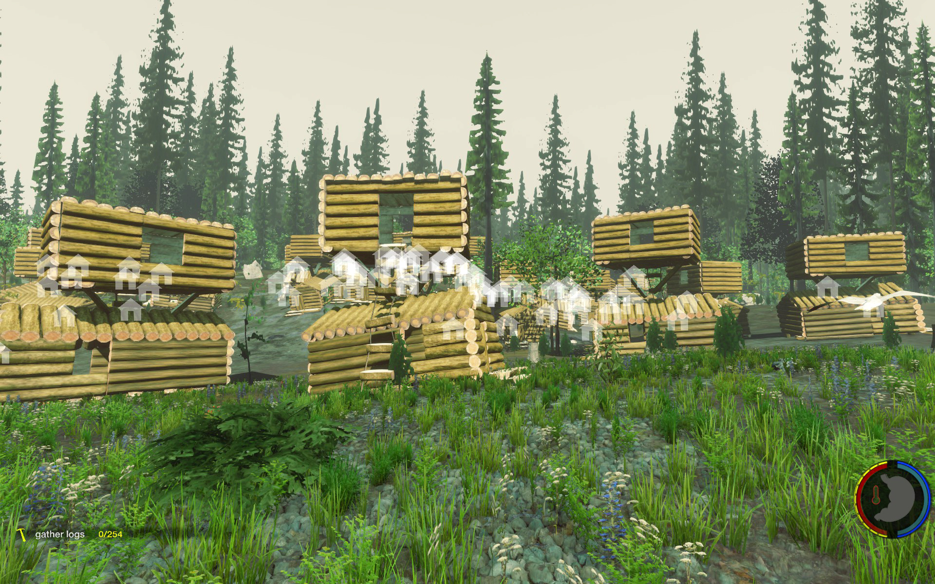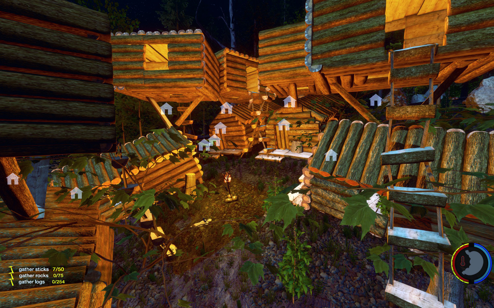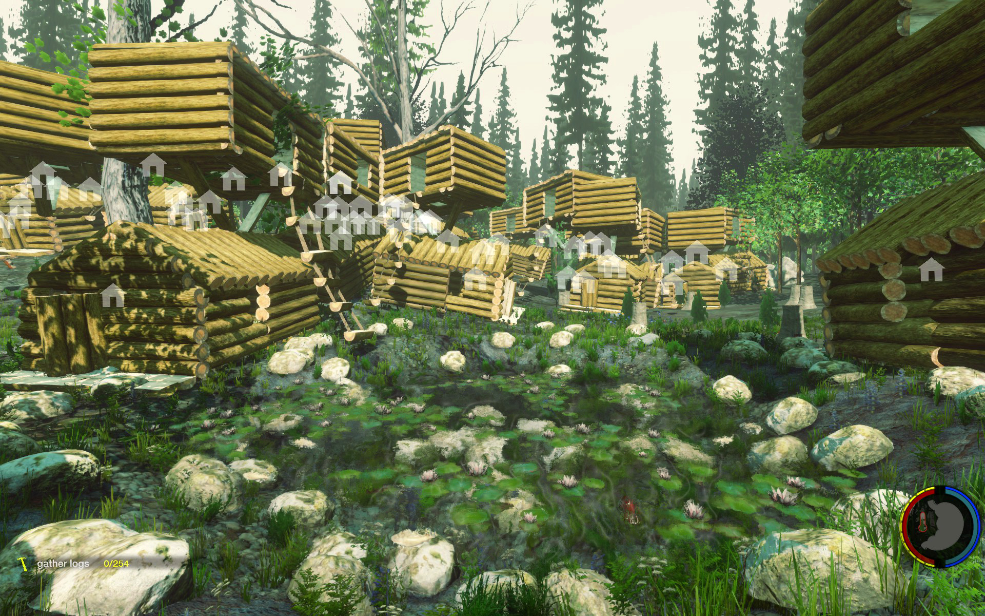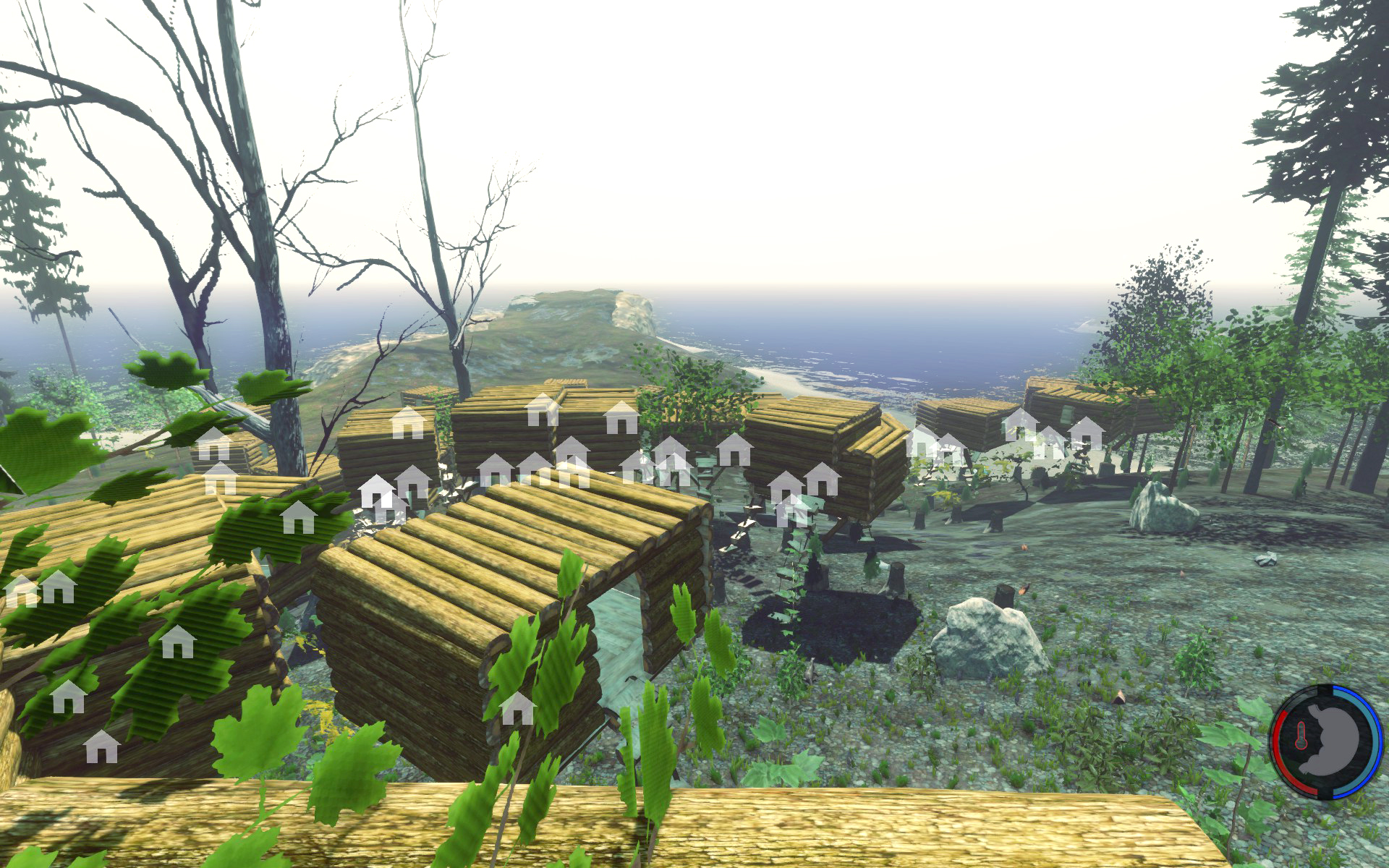 Aufgesetzt wie üblich auf Bäumen, der Rest rundherum wurde abgeholzt so dass die Baumhäuser wie schwebend wirken