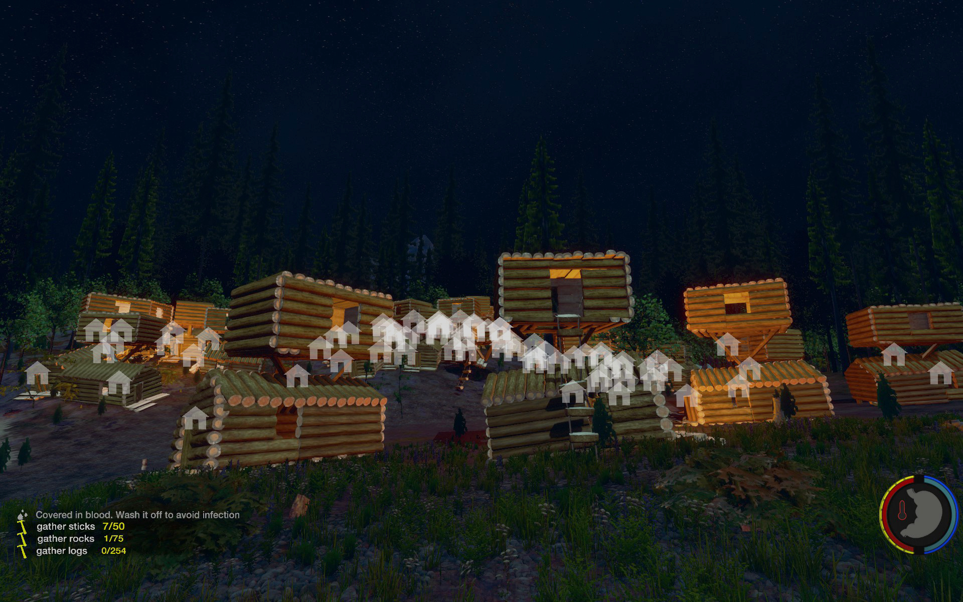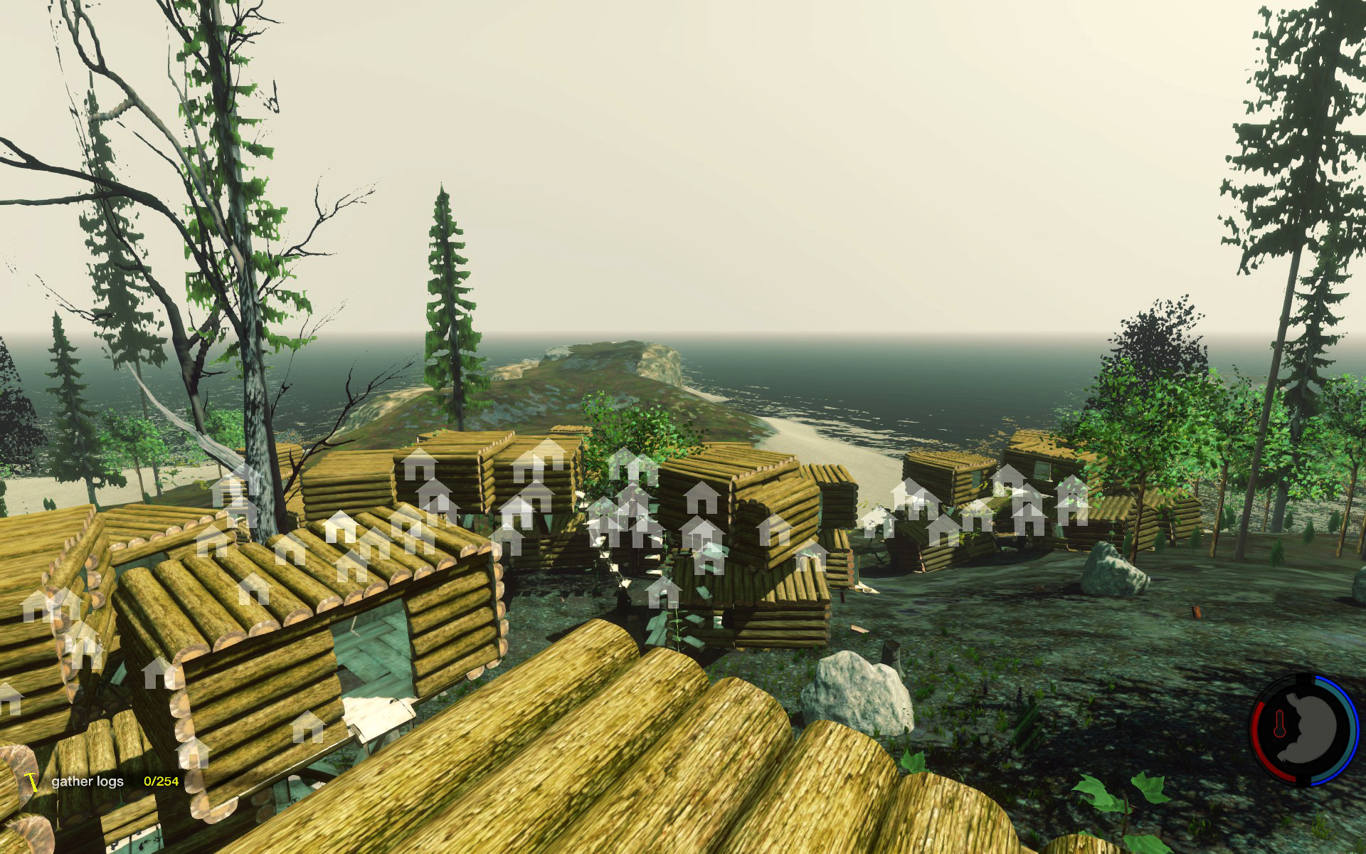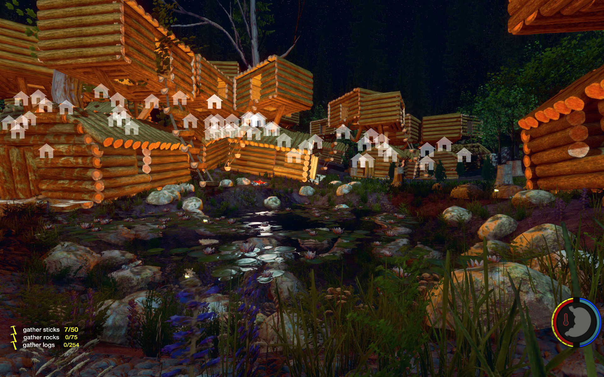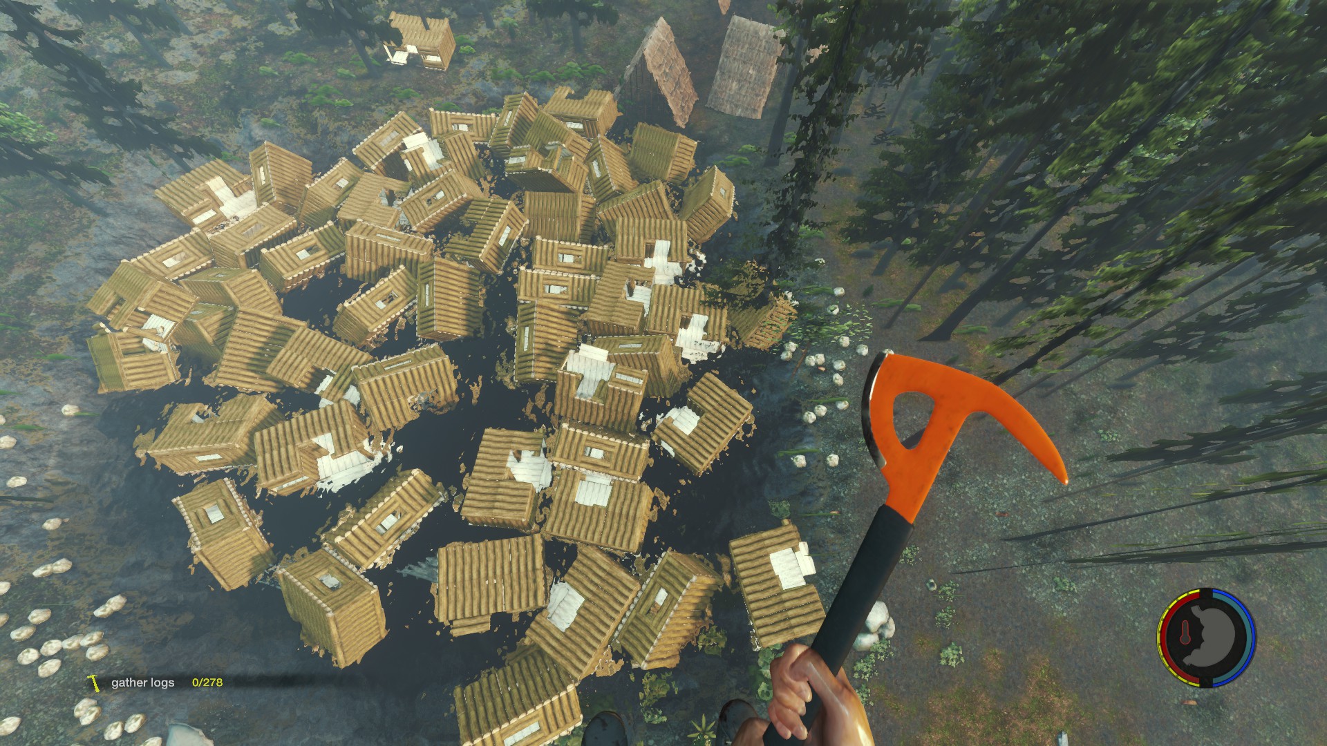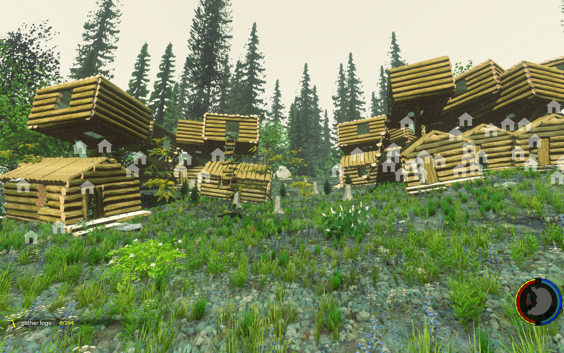 Aufgesetzt wie üblich auf Bäumen, der Rest rundherum wurde abgeholzt so dass die Baumhäuser wie schwebend wirken