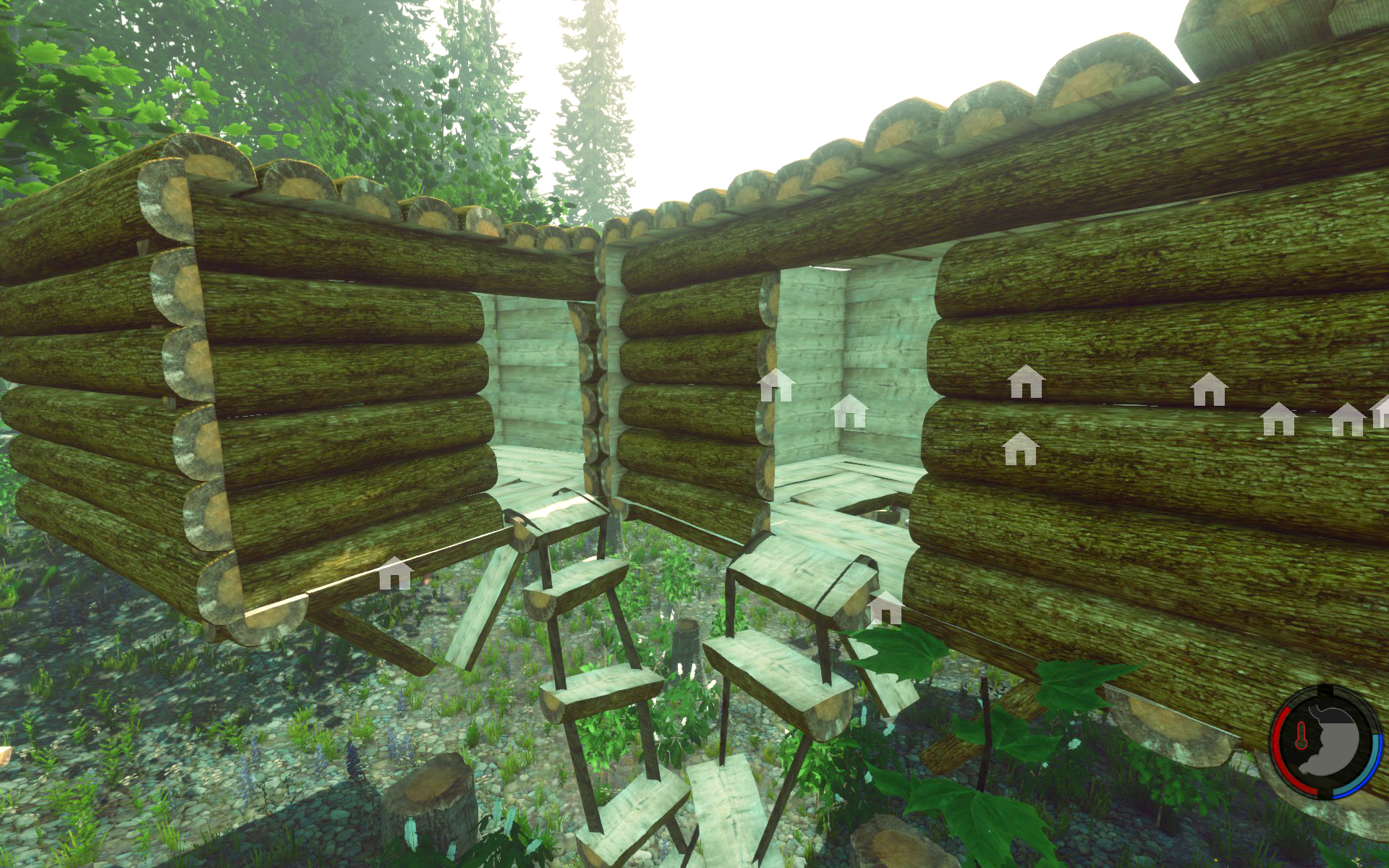 Wir bieten in unseren schwebenden Unterkünften natürlich einen begehbaren Notausstieg, der auch zum grundlegenden Schnelltransport genutzt werden kann. Auch können wir auf Ihren Wunsch hin Zimmer mit Flora und Fauna ausstatten: