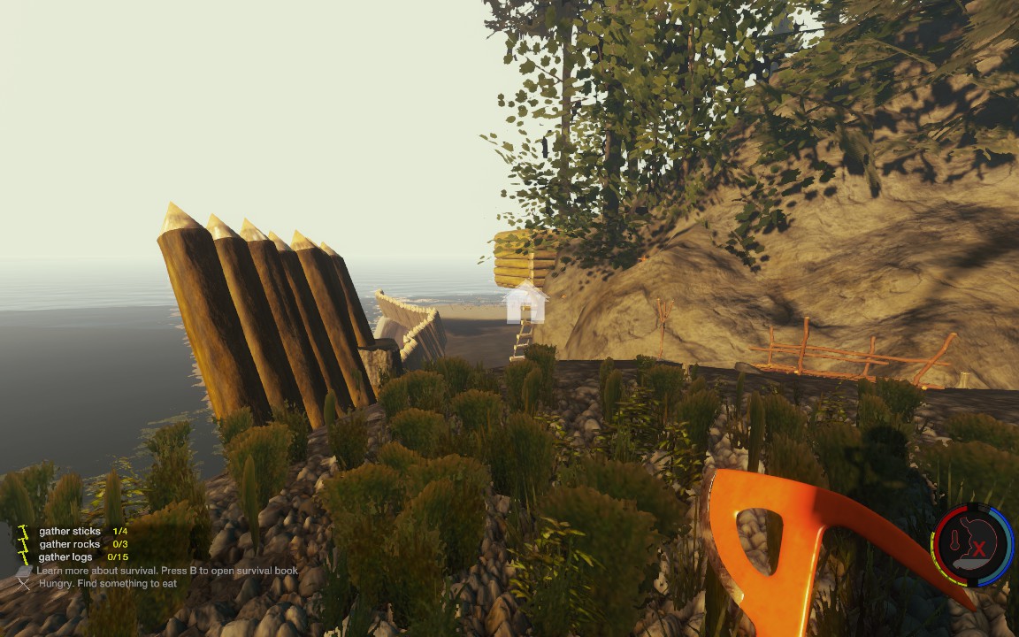 Bild 2 zeigt mein Lager nochmal von innen, aber aus der anderen Richtung und Bild 3 zeigt den Eingang zum Hauptlager. Das Baumhaus hab ich eigentlich nur ais Interesse dahingebaut, jedoch stellt es einen ziemlich guten Schutz dar, falls man mal Besuch kriegt. (Wobei das Hauptlager wirklich zu 100% sicher ist, wurde noch nie entdeckt dort)