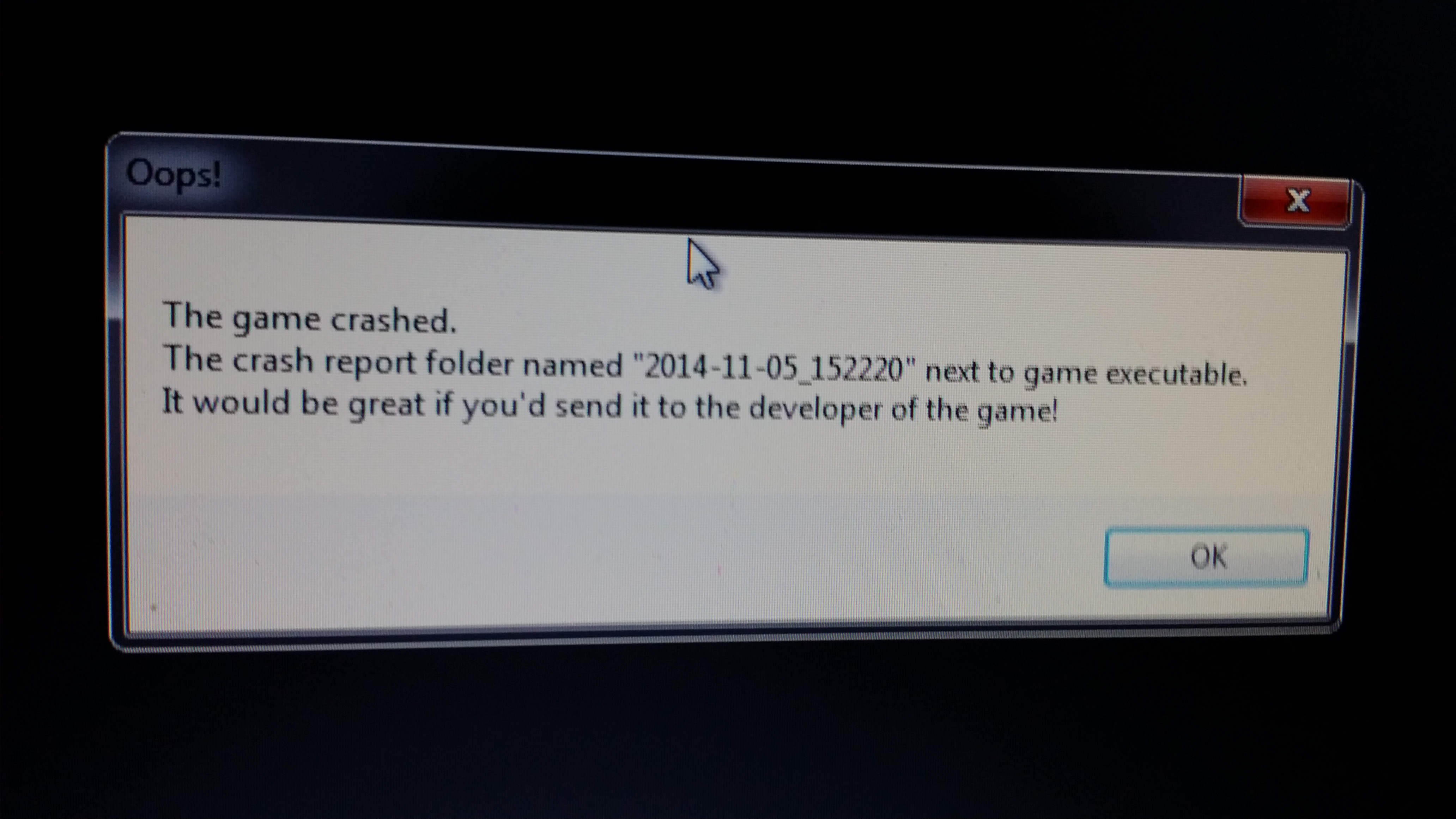So jetzt zu unserem Problem wenn wir anfangen zu spielen funktioniert alles gut aber nach dann stürzt das spiel ab, dann kommen die 2 Sachen die ich für euch fotografiert habe.
