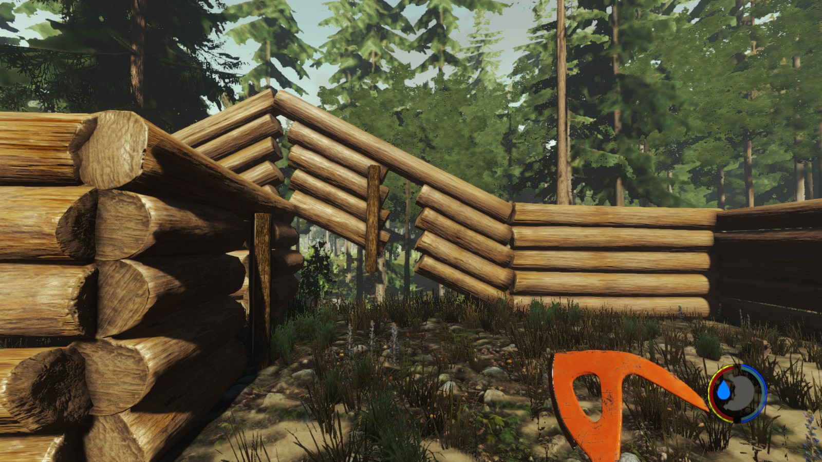 3. Beim letzten Versuch hat es geklappt. Endlich Blaupausen gesetzt, und auch alles gebaut, trotz Speichern und Laden zwischendurch. Erst das Häuschen, Und dann die Walls, die zum Schutz drumstehen. Hat auch in der Blaupause alles gut ausgesehen. Ich setze den letzten Log ein, und dann das: