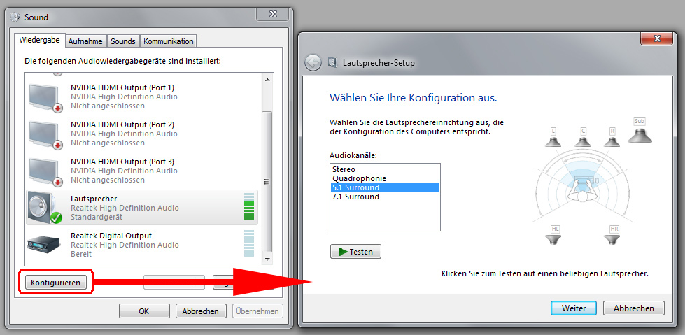 Wenn es bei dir auf Stereo steht @Zeckenbusch, probiere einfach mal zum Test auf 5.1 zu stellen und dann das Spiel neuzustarten mit Hörprobe. Danke auch an dich für die Idee mit der Tastenbelegung. Warum ich da nicht selbst schon draufgekommen bin