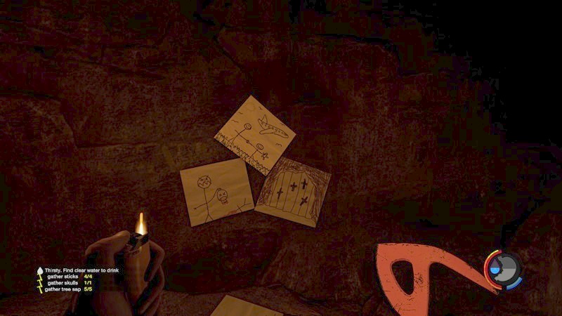 Ich in in der nähe des abgestürzten Cockpits in eine Höhle gekletter. Laut englischer THE FOREST Karte ist das Höhle Nummer 1. (Timmys Exit) Dort liegen Zeichnungen von Timmy auf dem Boden herum. Den gesamten Weg kann ich nicht mehr zu 100% rekonstruieren, ich beschreibe mal wie folgt: