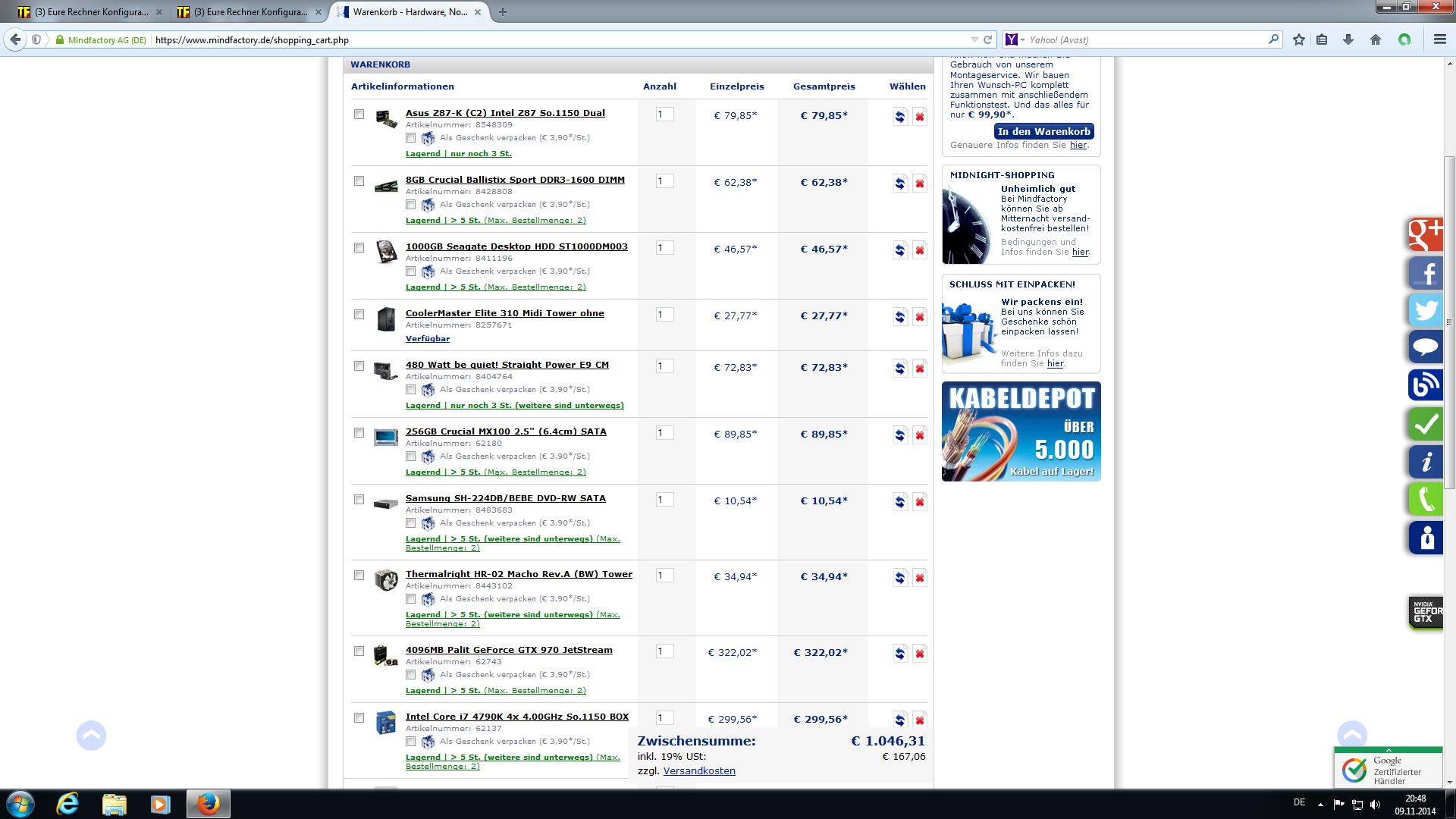 Hab dir mal was zusammen gebaut, ist im Anhang. Der Shop bei dem du bestellen willst ist VIEL zu teuer, selbst wenn du Rabatte kriegen solltest. Round about 650 Euro würdest du für die selbe Leistung bei anderen Shops zahlen.