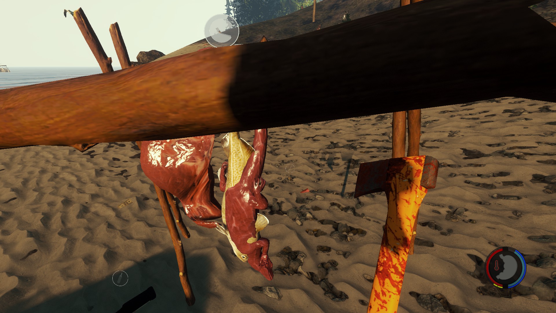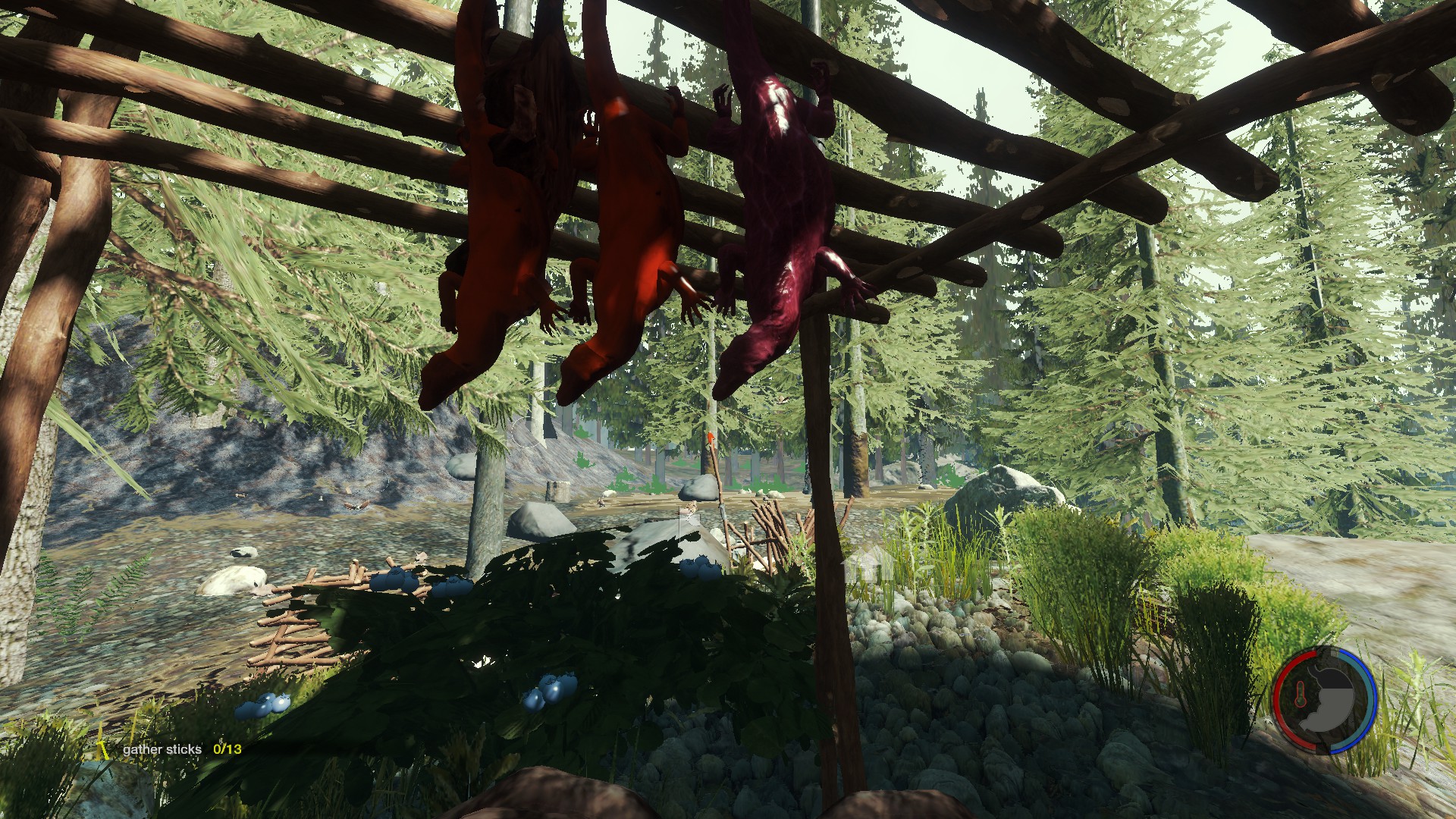 Der Futter Trockner: Ein riesen Teil aber nur zwei Animierte Plätze. Soll heißen, hänge ich zwei Kaninchen oder Lurche dran, Werden sie nebneinander gehangen, sind sie "reif" sind zwei Icons zum essen zu sehen. Hänge ich ein drittens Item dran, wird es überlagert oder gar nicht dargestellt. Jedoch wächstdie Zahl der Icons.