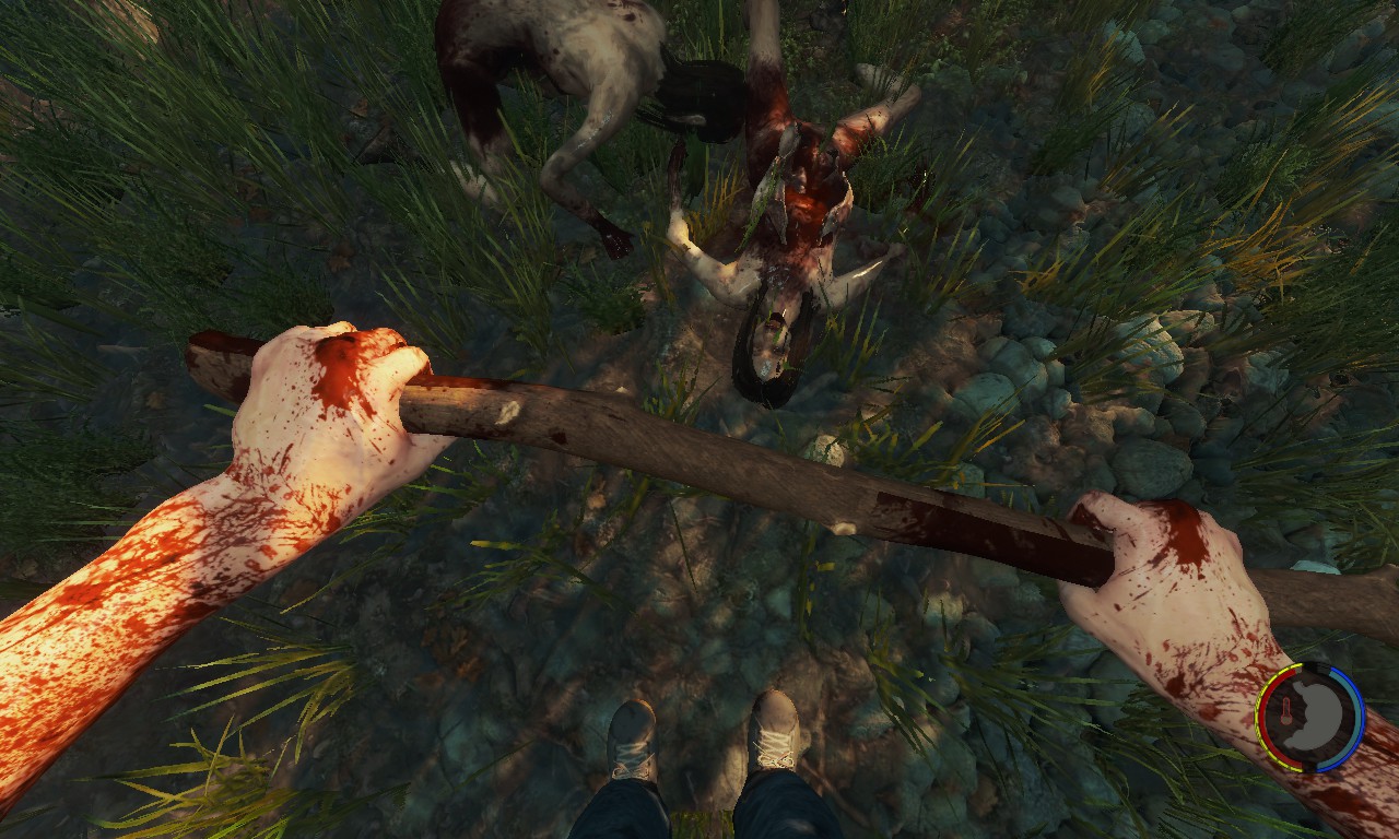 Die Nackte war vorher ohne Blut am Körper. Nach 2-3 Pfotzen von der Hungrigen, war sie voller Blut. Netter Effekt, finde ich. Man beachte auch den offenen Bauch der Hungrigen.