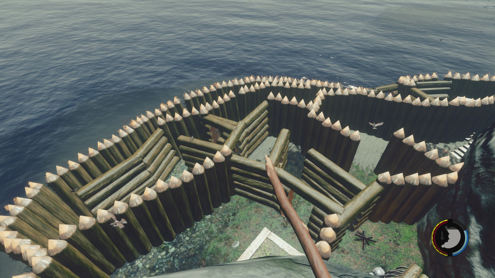 Zusätzlich legte ich meine Behausung wie ein Irrgarten an. So, hoffe ich, überliste ich die feindliche KI. Konnte es aber noch nicht überprüfen denn, wie gesagt, noch nicht entdeckt von den Kannibalen.