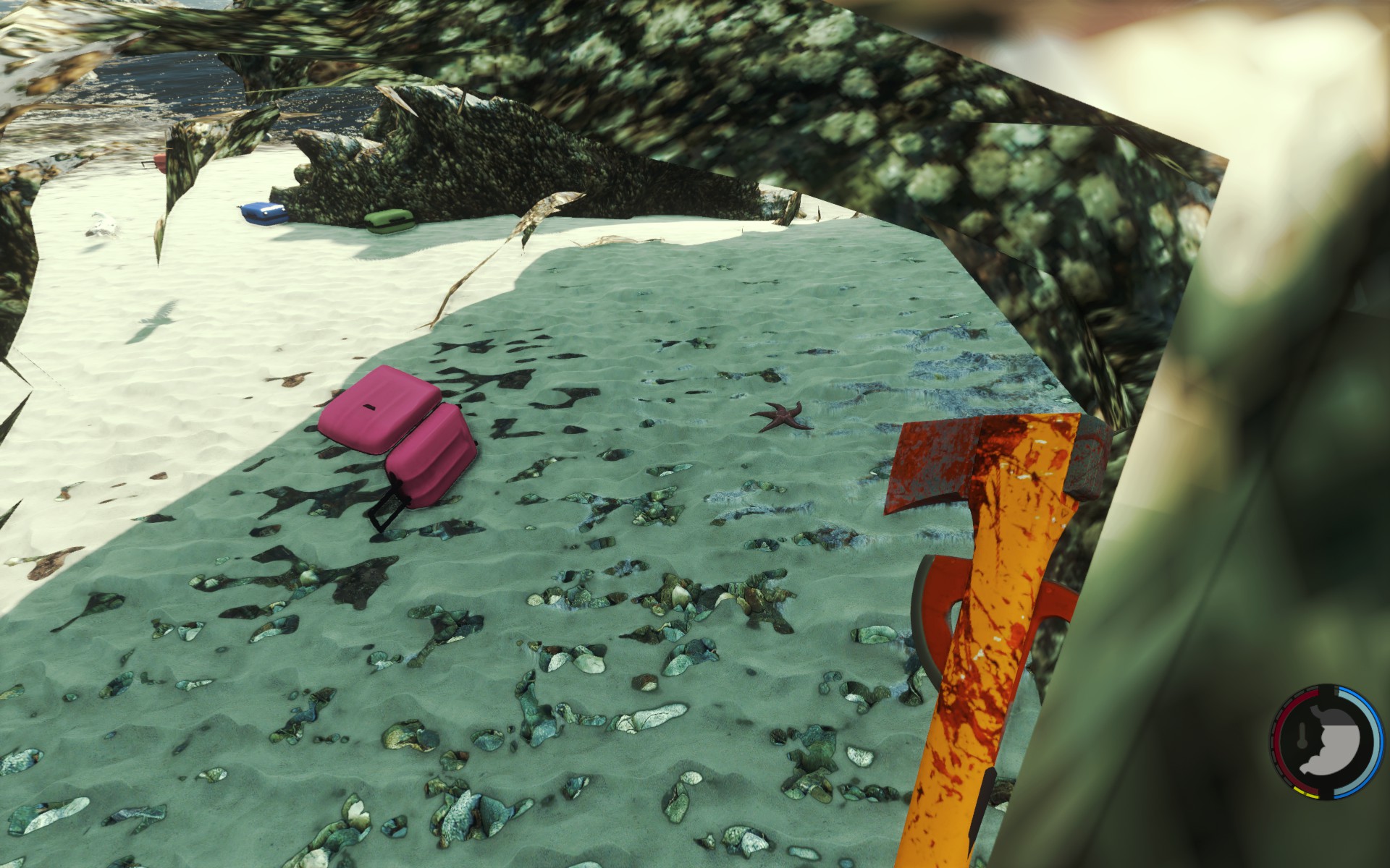 Bei mir ist die Modern Axe jetzt neben der Leiche am Strand am Felsen angelehnt anstatt IM Felsen