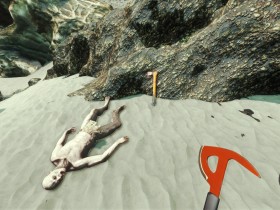 als ich an dem respawnpunkt in der Höhle war wo die 4-5 Kanis schlafen, ist die Axt oberhalb der höhle nur nicht mehr an der Holzwand sondern weiter rechts an einen halben Menschenleib.