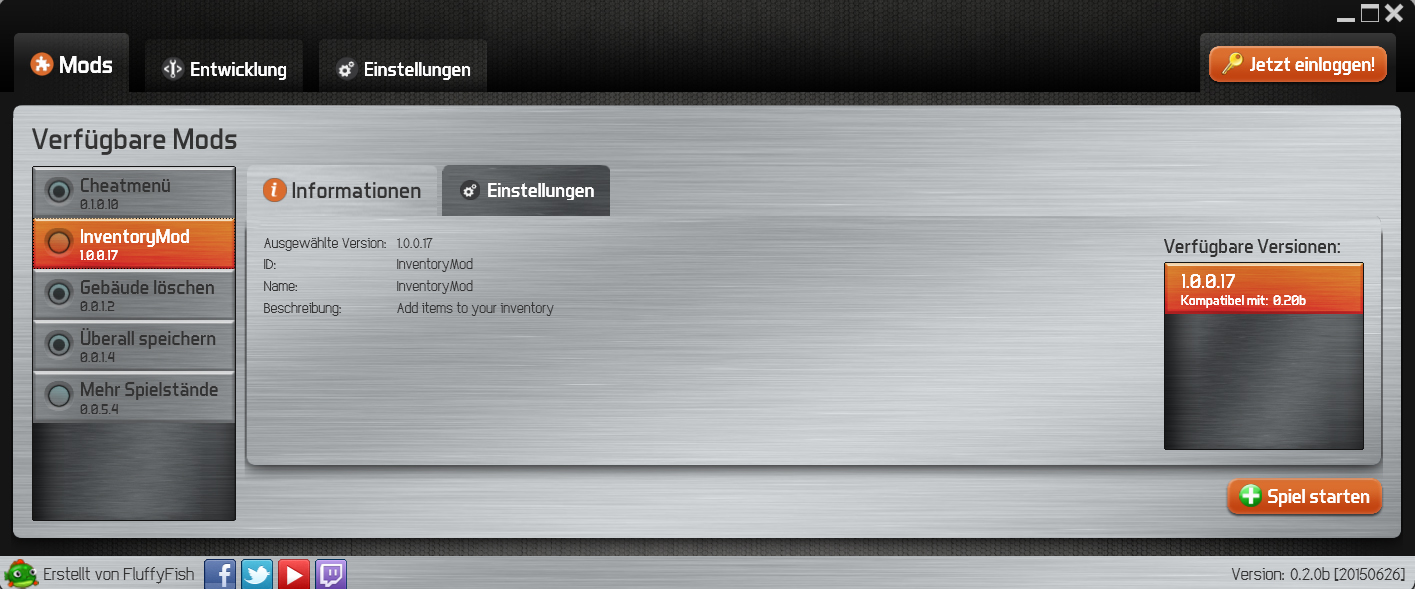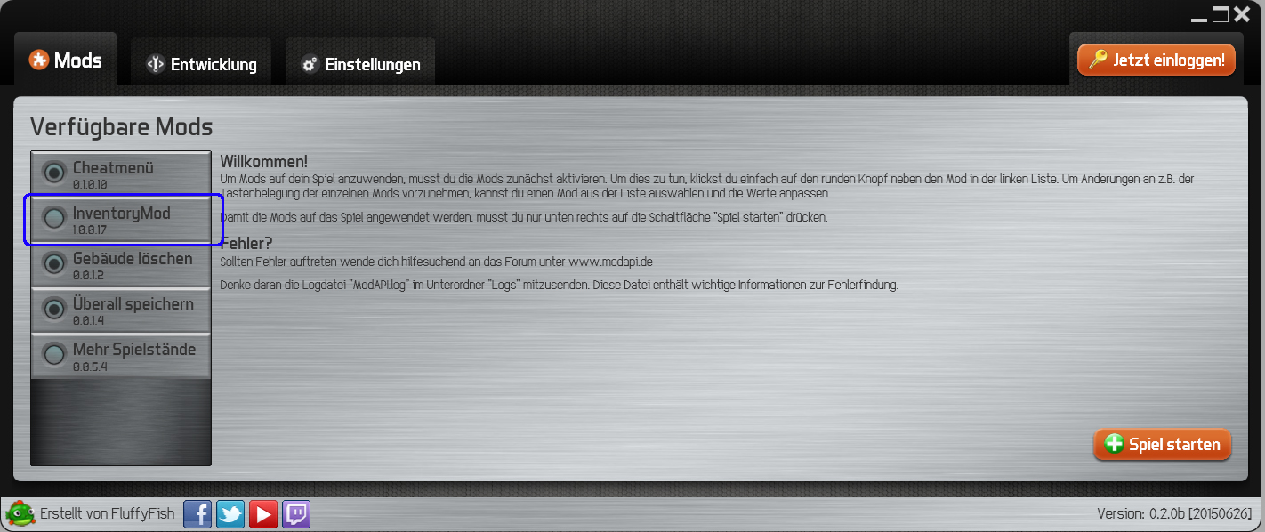Ist der Inventorymod korrekt geladen, erhält man ein neues Modul (nicht vergessen: Punkt = Modul aktiviert, kein Punkt = Modul nicht aktiviert!):