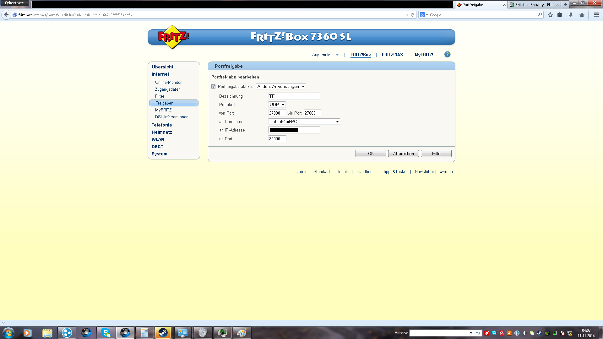 Schritt 1. falls ihr einen fritzbox besitzt dann gibt in der internet url leiste fritz.box ein