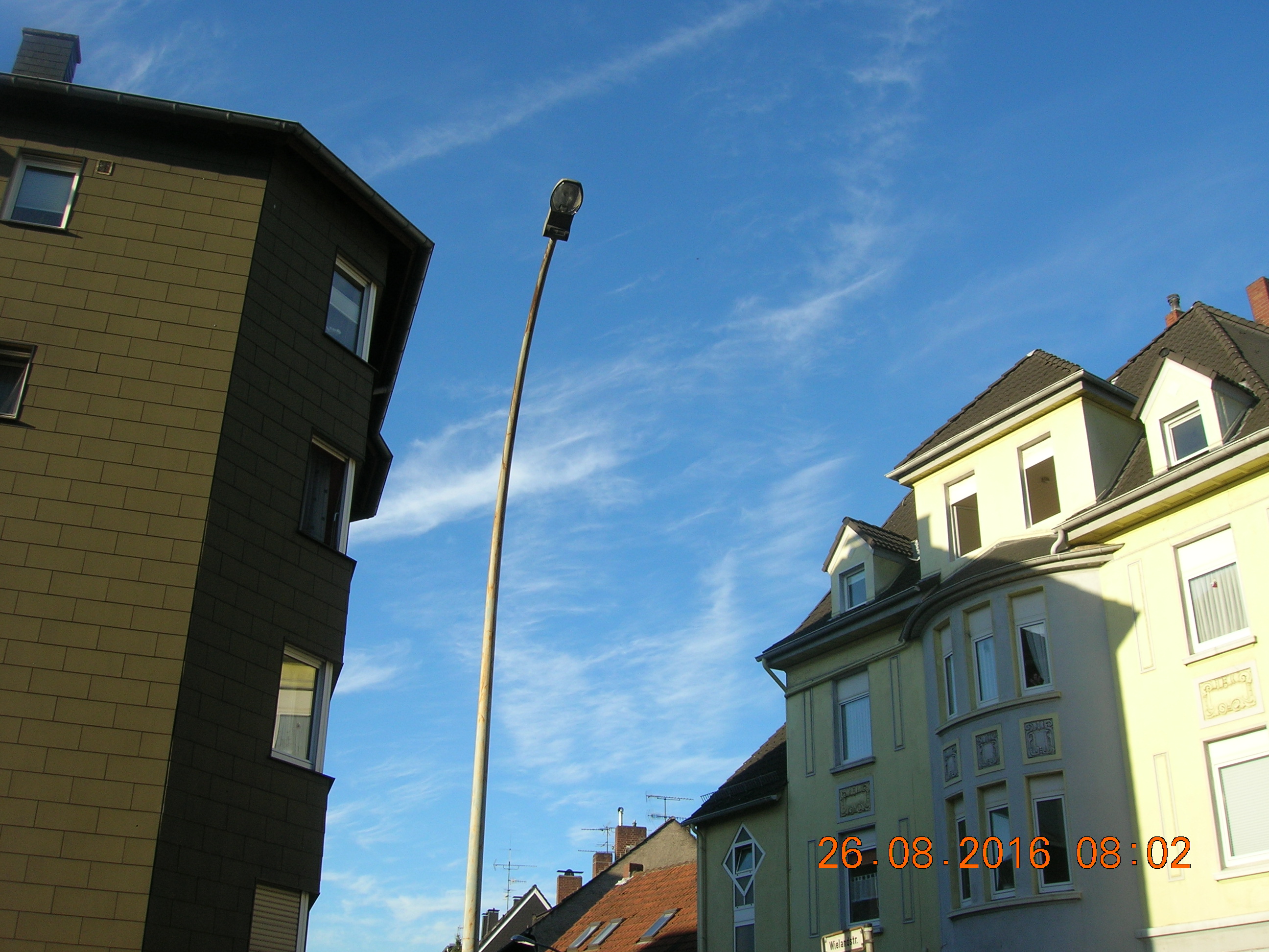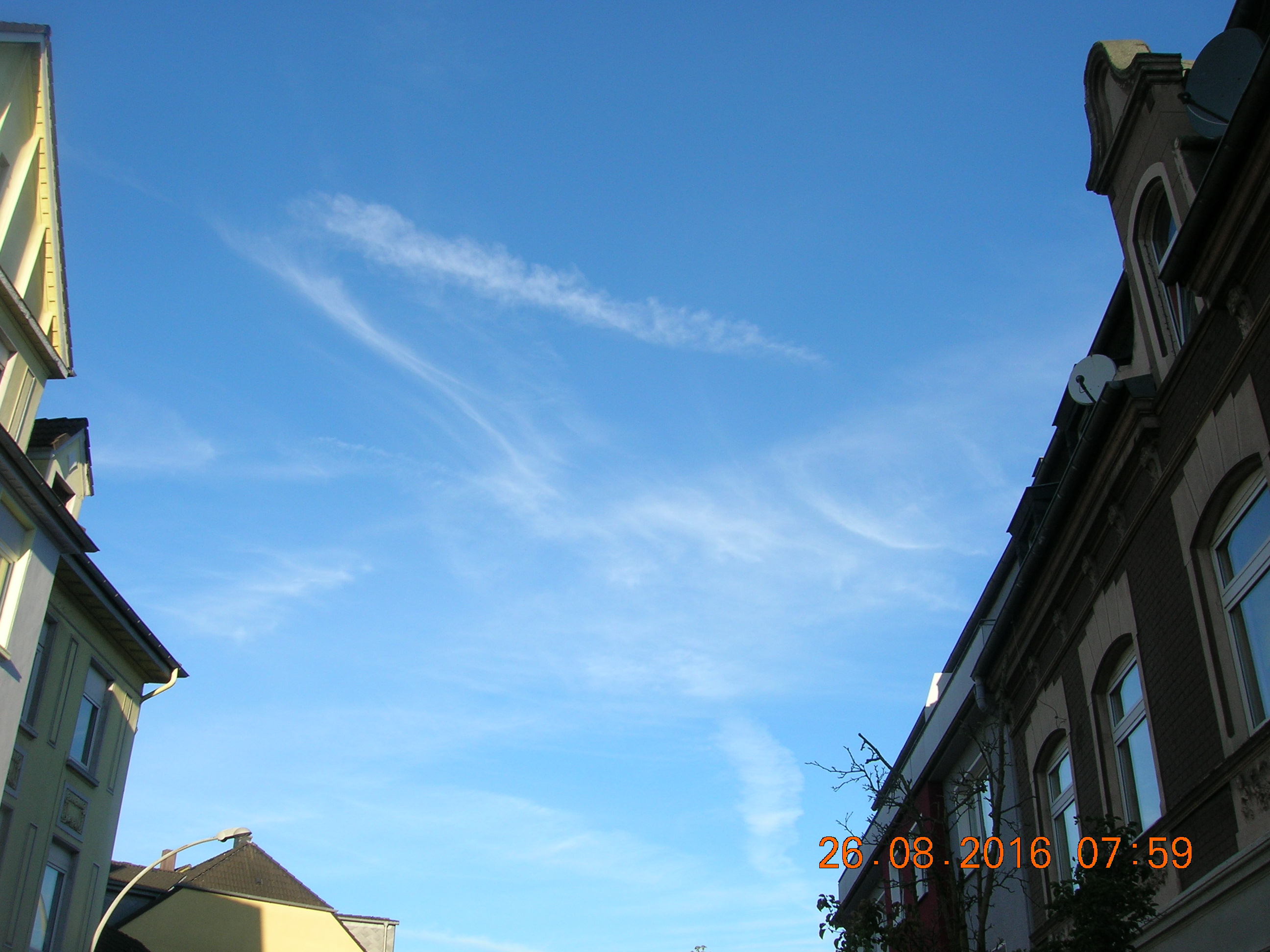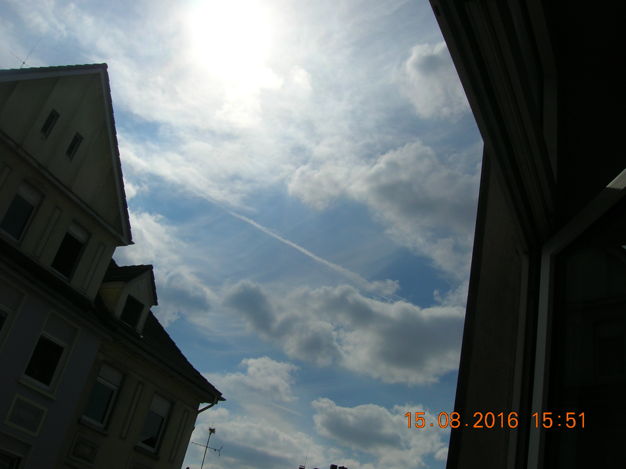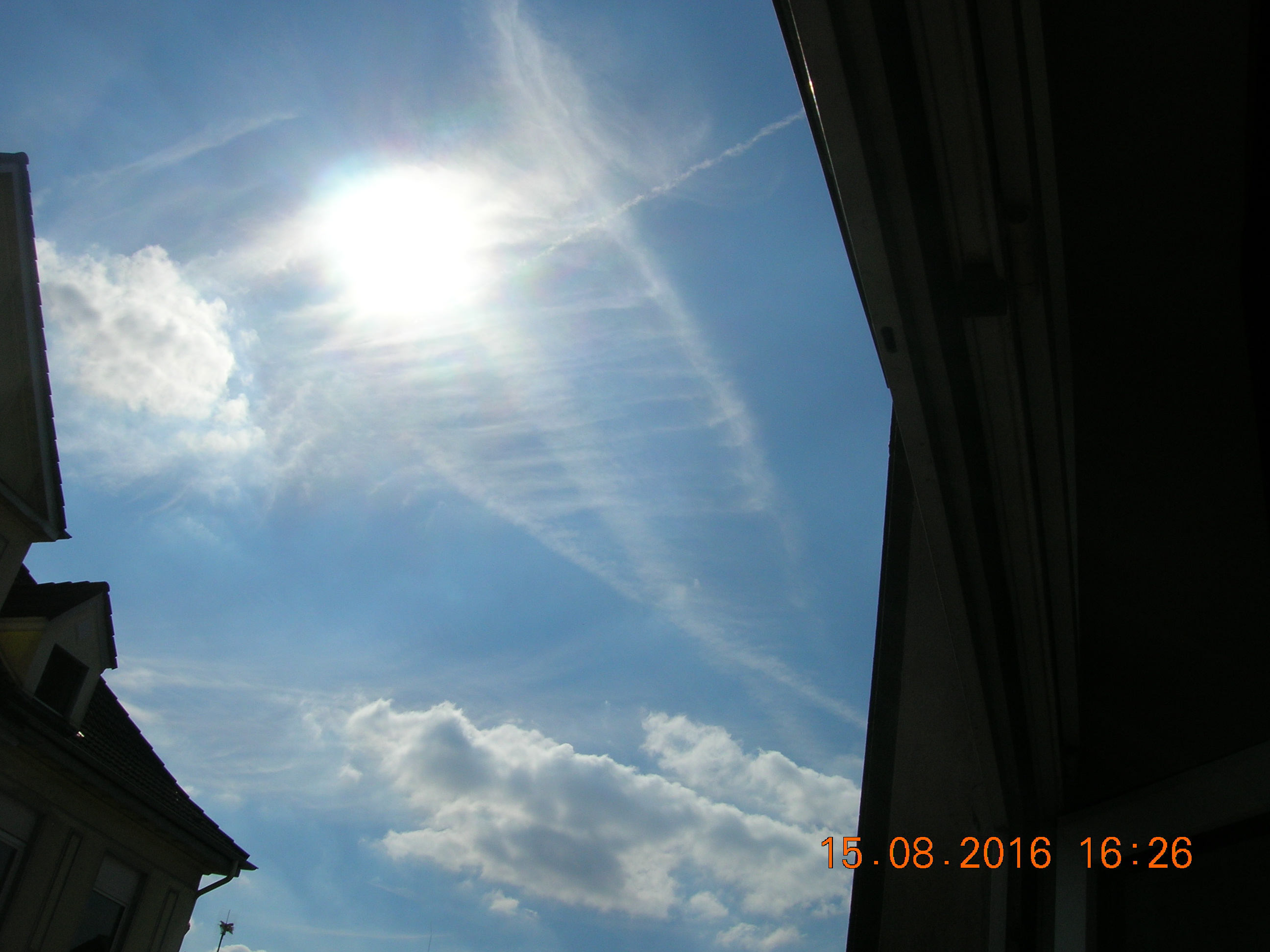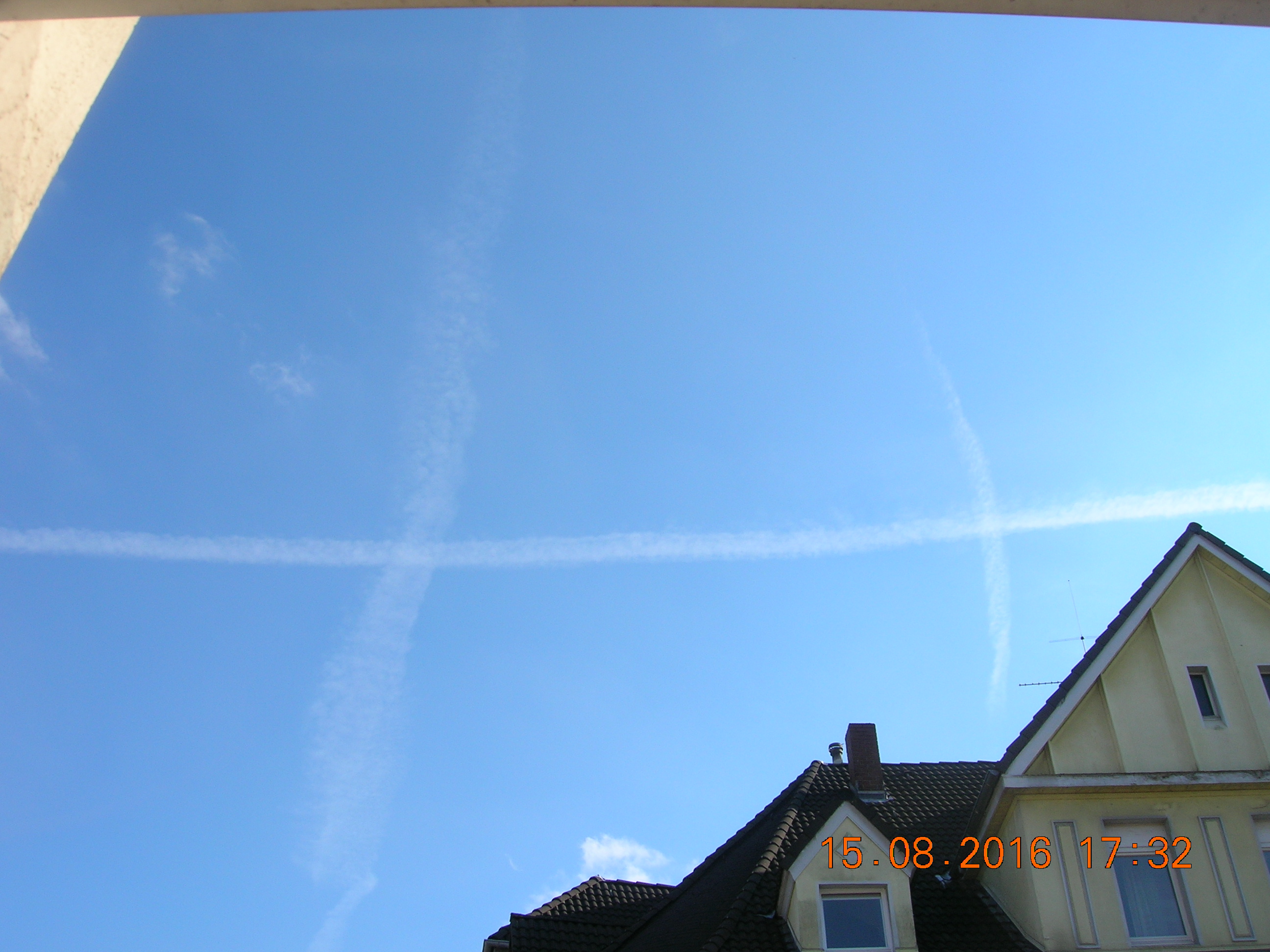 Anscheinend ist die NWO so frustriert, das die Himmelsvergewaltiger am Horizont fast pausenlos Nanometalle in die Atmosphäre sprühen... Der Himmel direkt über mir überwiegend blau, bis auf ein paar kleine Chemieschleier. Die nächsten Tage werde ich mal ein Heilmittel, das heißt MMS (Natriumchlorit + Citronensäure) bei stark bedeckten Himmel probieren. Man vermischt beides, rührt es um, und es beginnt zu dampfen. Da man mit diesen Heilmittel nicht mit Metall in Berührung kommen sollte, werde ich schauen wie sich MMS in den oberen Luftschichten auswirkt. Da hier so gut wie kein Mensch (ICH ZWINGE ZU NIEMANDEN ETWAS) sich der tödlichen Zwangsvergiftung überhaupt nicht im klaren ist, geschweige den sich mal richtig informiert, und die Menschen überwiegend dumm und Ignorant sind, werde ich es selber in die Hand nehmen. Draußen versuche ich die Menschen über heimliche Operation der Wetterkontrolle aufzuklären, was bekommt man natürlich meistens als Antwort? "Ach das ist alles ganz normal, man kann da nichts gegen tun" Ohh Leute, ihr weißt noch gar nicht was es alles für tolle Sachen gibt!! Und Ausreden wie: Ich habe keine Zeit dafür, oder interessiert mich doch nicht, usw... Ja die Leute sollten sich mal echt darüber Gedanken machen, ob seh dieses verbrecherische System sogar befürworten. Ich frage mich manchmal echt, warum ich mir hier überhaupt die Mühe mache Aufklärungsarbeit zu leisten!! Ist doch alles für`n Arsch!!! Das macht mich innerlich ziemlich wütend. Solange die Tische gedeckt sind, das Smartphone auf volle Leistung läuft, der PC gut zum spielen ist, der Fernseher jeden Tag läuft solange passiert gar nichts, die Menschen schauen sich bei ihrer totalen Vernichtung zu. Fakt ist, ES muß geklärt werden, wieso wir zum Beispiel die Jahre viel zu wenig Sonne abbekommen haben. Dabei ist die Sonnenenergie Lebensnotwendig, und fördert die Produktion von Vitamin D. Und wenn der Körper kein Vitamin D hat, wird der Mensch auf kurz oder lang sehr krank. Und uns wird erzählt es fände einen Klimawandel statt... Und die Menschen GLAUBEN das auch noch, oder mag vielleicht auch sogar sein. Es ist der militärische Industriekomplex der das Wetter immer mehr unter ihrer Kontrolle hat. Geo-Enginering, Haarp, Projekt, Projekt Blue Beam, das sind einige von vielen Sachen die noch kommen werden... Ich sage nur Neue Welt Ordnung, kurz: NWO! Ach und noch etwas, Europa steht aktuell am Rande eines Bürgerkrieges, so wie des großen Krieges, die friedlichen Zeiten sind vorbei, und ich habe sehr große angst für einen Ausbruch... Wenn die Deutschen jetzt nicht mal langsam den Arsch hoch bekommen, dann haben die Deutschen nichts anderes verdient, als unter zu gehen, PUNKT AUS! Und das tut mir sehr weh, sehr sogar, ich kann meine Tränen teilweise gar nicht mehr zurück halten. Das alles weil die Menschen so dumm und ignorant sind, weil fast keiner überhaupt rein gar nichts schnallt. Wie stellen wir den unsere Zukunft vor? Was sagt ihr Mütter und Väter euren Kindern wenn die euch mal fragen: Mama/Papa, wieso habt ihr das zugelassen, WARUM??? Leute habt ihr den Schuß immer noch nicht gehört, müssen erst Atomkraftwerke von Terroristen in die Luft gesprengt werden, damit mal euer Wecker klingelt? Im Falle eines großen, ich meine damit eines GROßEN Krieges: Sollte von deutschem Boden die erste Atomrakete (Von Marionette Obama) in Richtung Rußland fliegen, kann es sein sein das wir mit einem Atomraketenbeschuß weg vom Fenster sind. Und warum, weil sich hier amerikanische Kriegsgeräte auf deutschem Boden befinden. Ah, und Wetterkrieg spielt natürlich auch eine wichtige Rolle im Krieg. Ich brauche da nur Italien zu erwähnen, wo kürzlich ein heftiges Erdbeben zu erleben war. Ob da Haarp mit hinter steckt?? Aber naja, mehr als predigen kann ich auch nicht mehr. Wenn die Menschen meinen, das es denen egal ist, dann sollten sie hinterher auch nicht schreien usw... So, nun packt mal eure Smartphones weg, schmeißt den Fernseher auch gleich in die Tonne und versucht mal das Gehirn ein bißchen zu benutzen, oder besser gesagt einzuschalten! So, danke für eure Aufmerksamkeit, und ich werde nicht aufgeben!