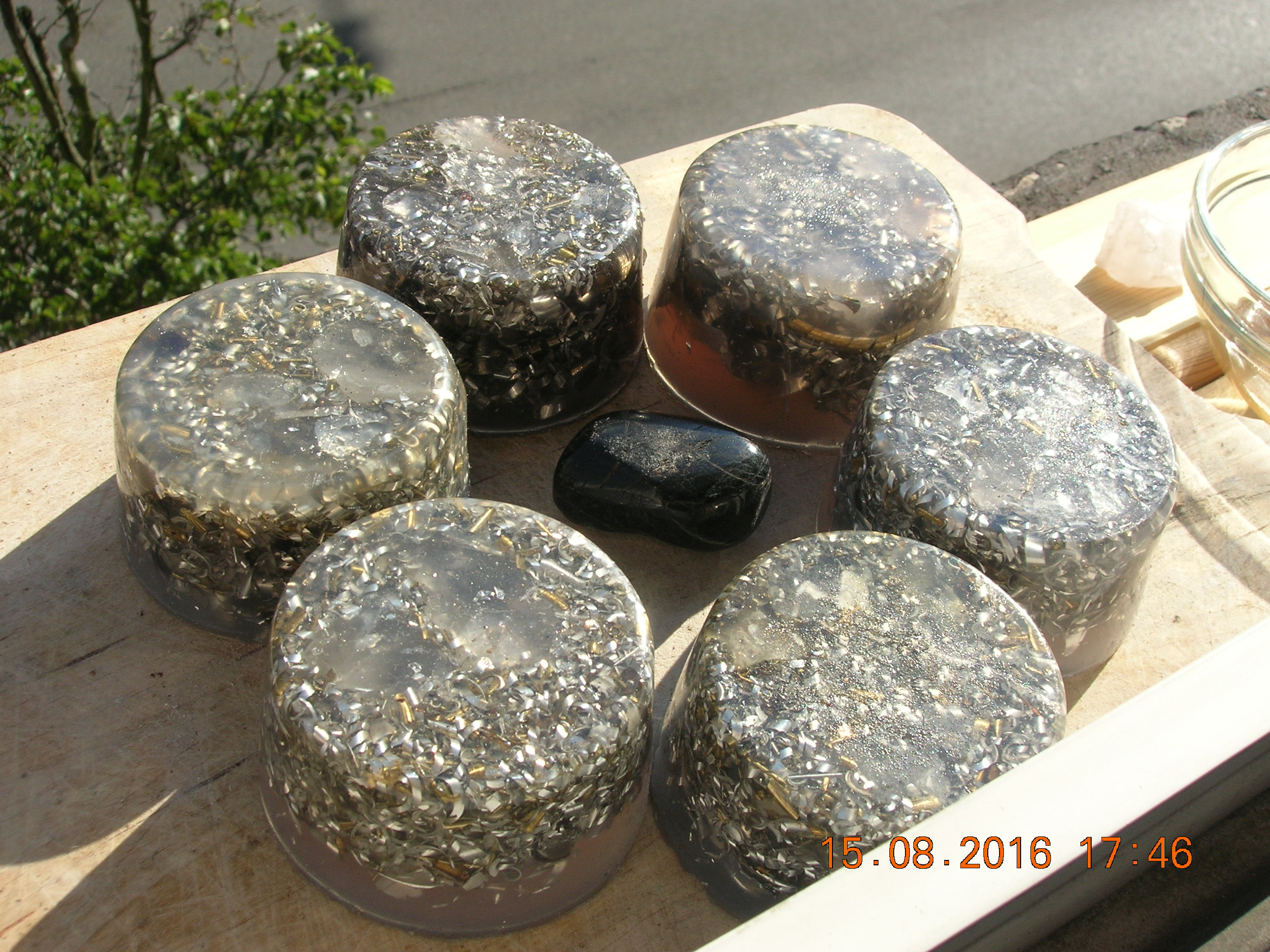 Weitere Verusche mit Essig, Bergkristallen und Orgoniten.