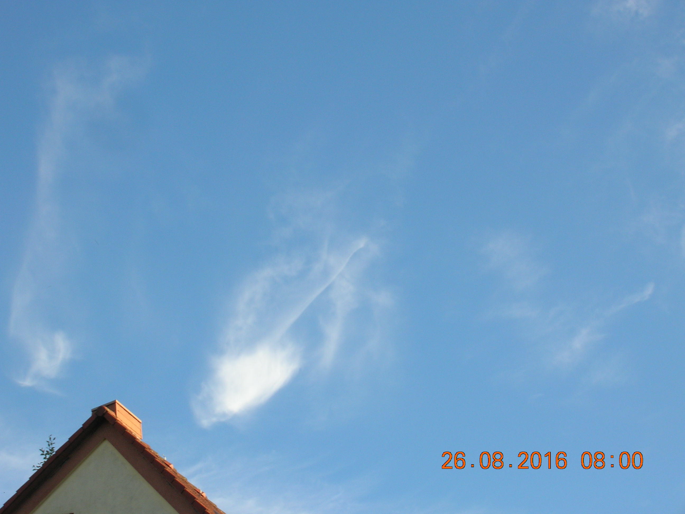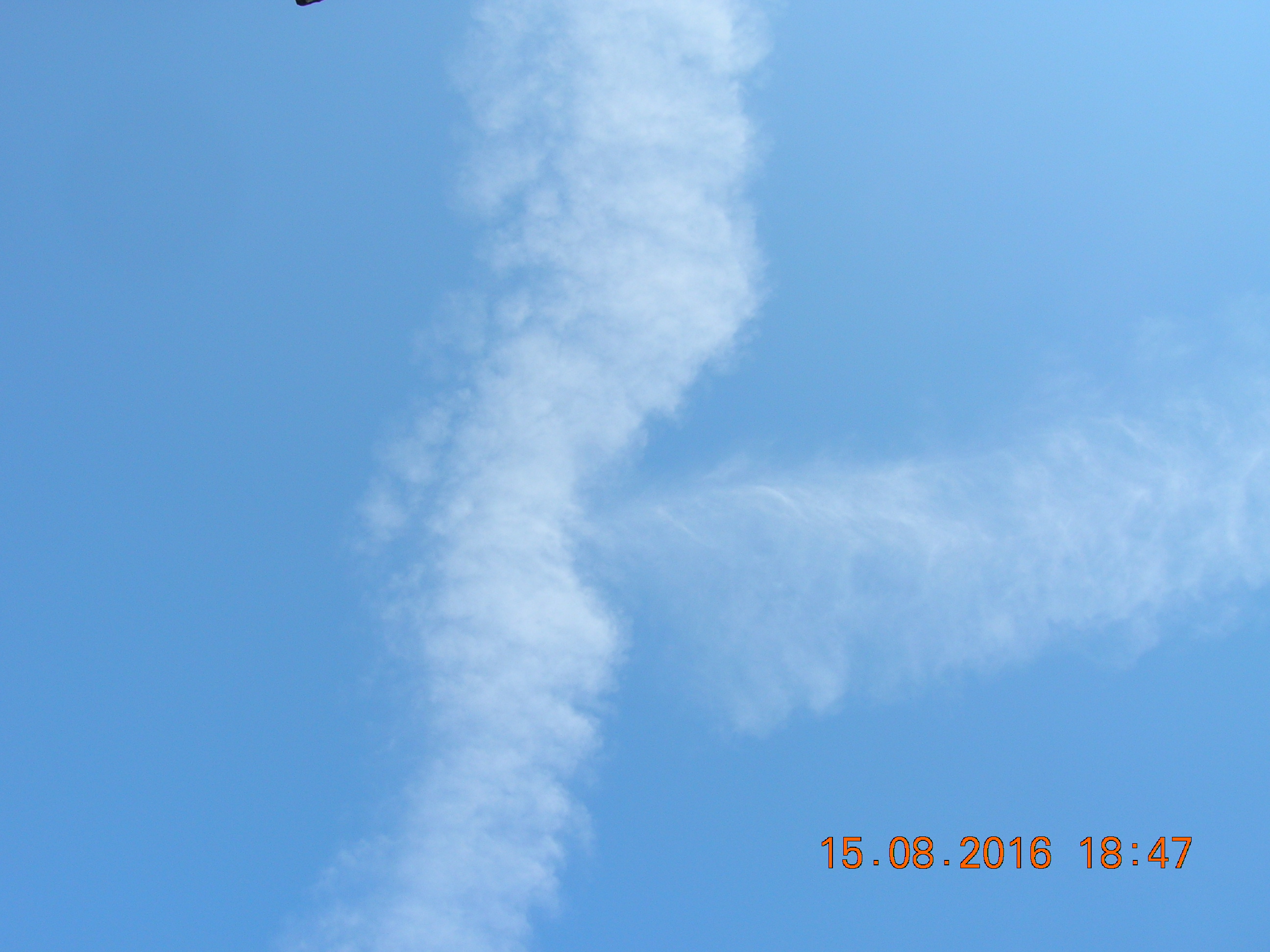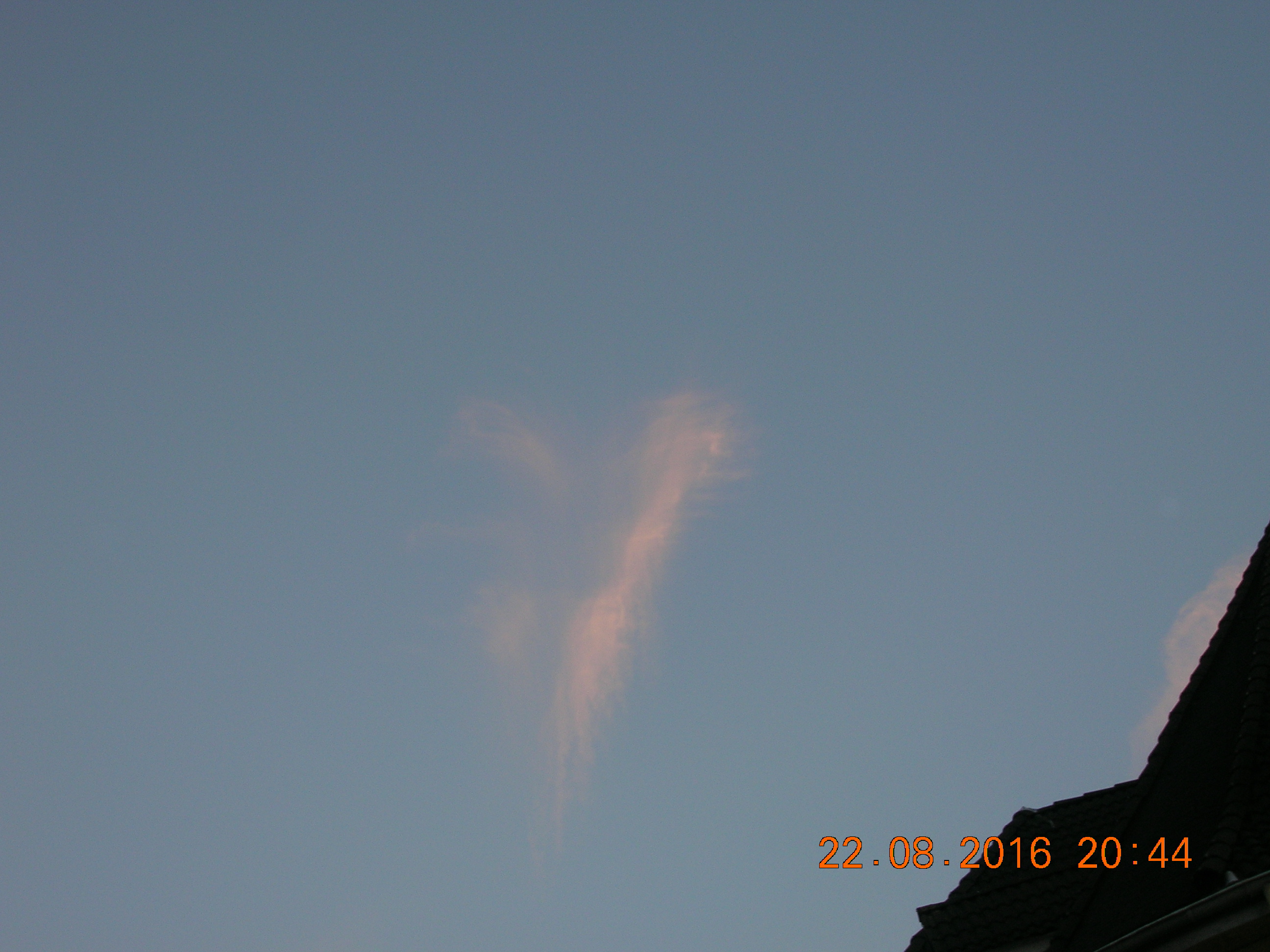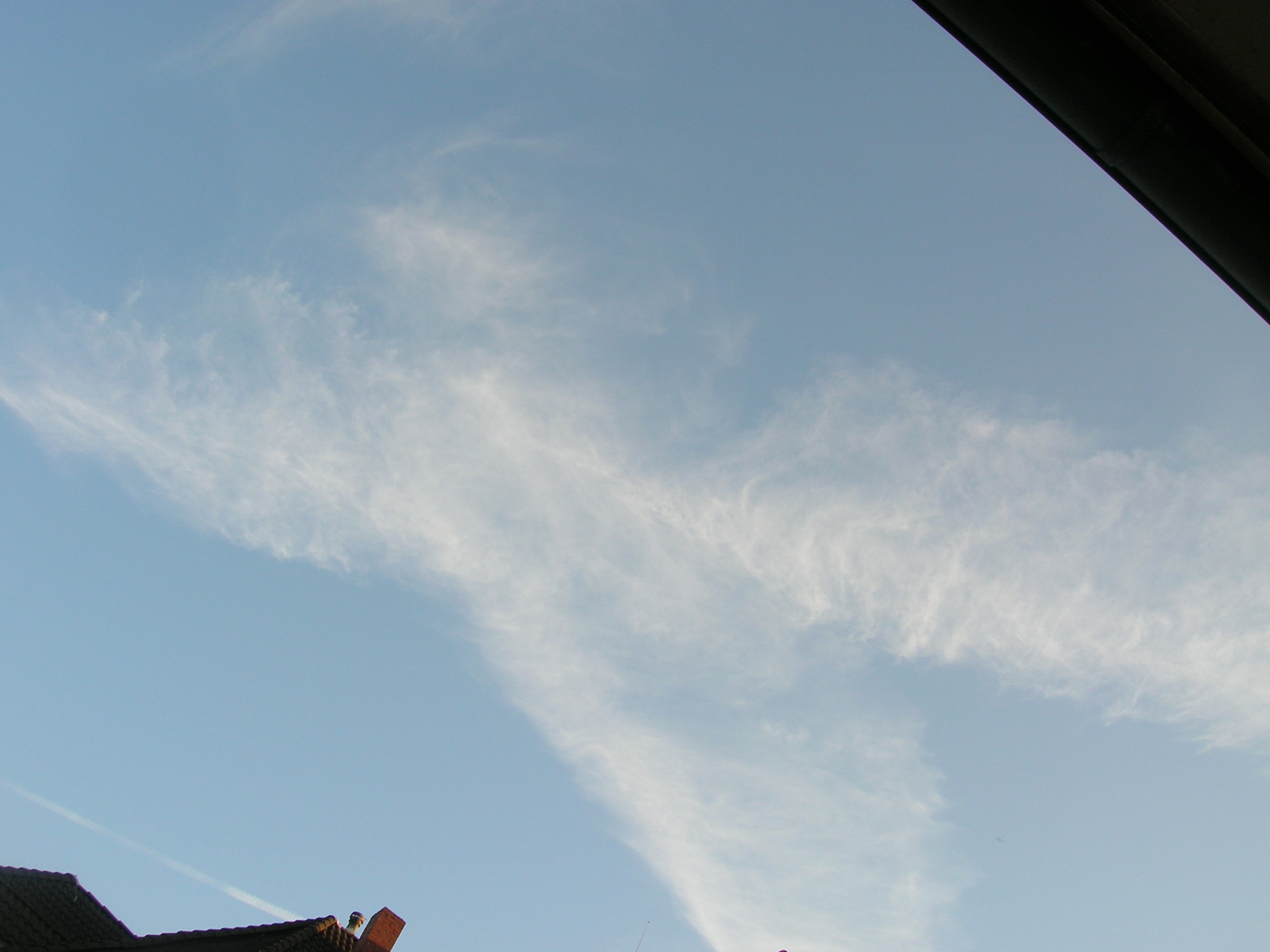 Mit ein bißchen Fantasie sieht man sehr deutlich den Engel in den Sylphen, und noch ein Foto von einem chemischen Kondensstreifen der sich aufzulösen beginnt.