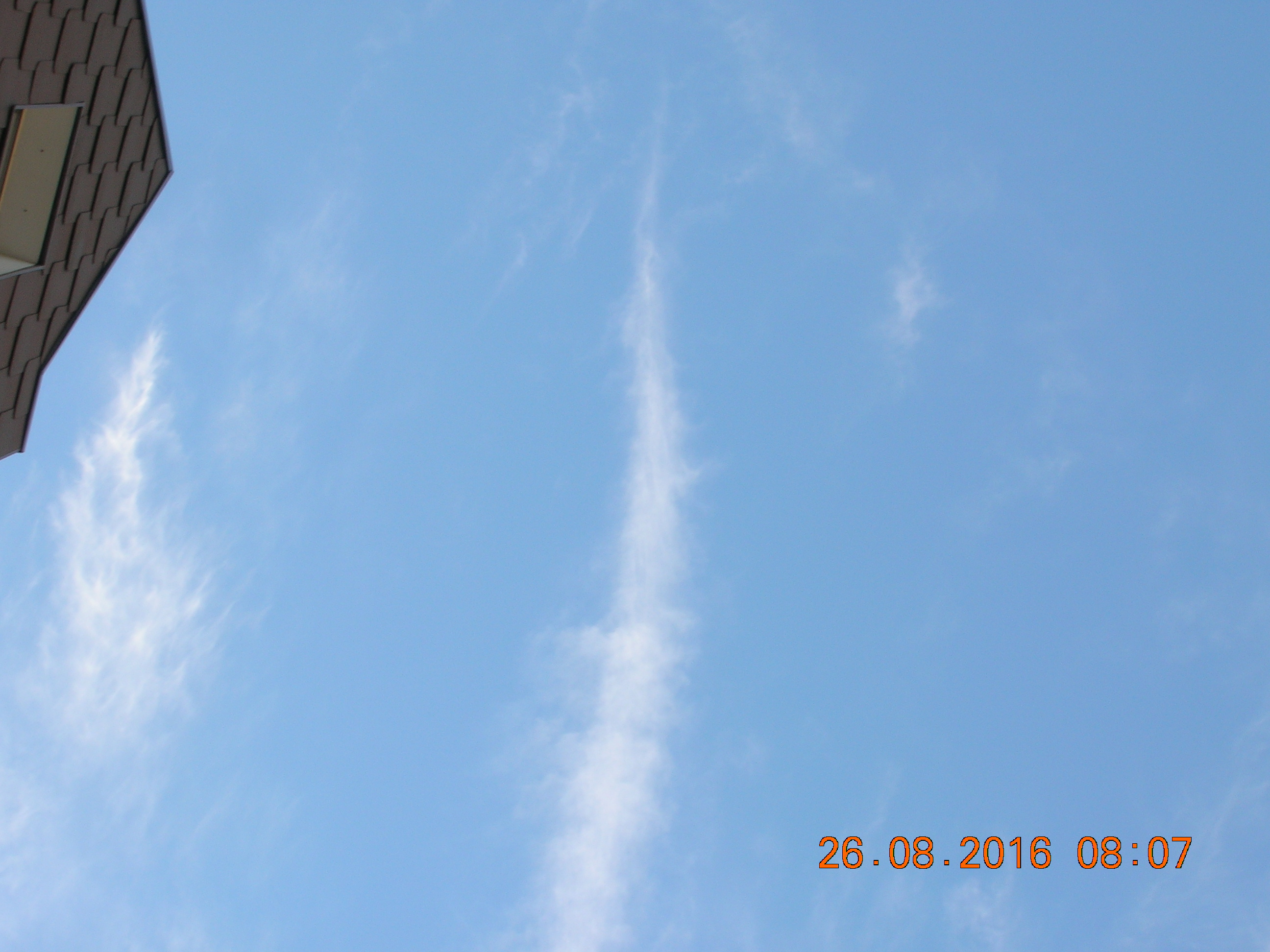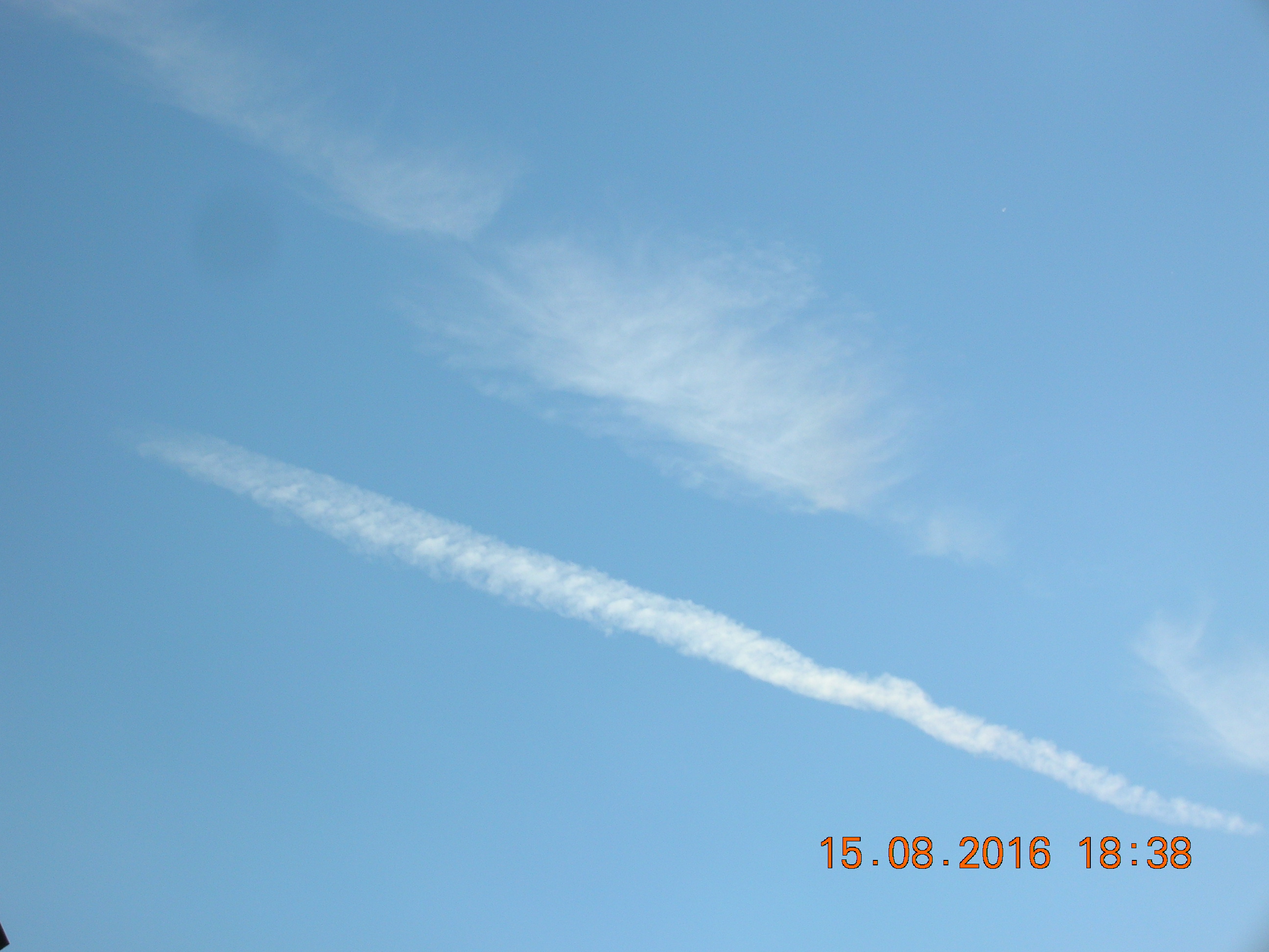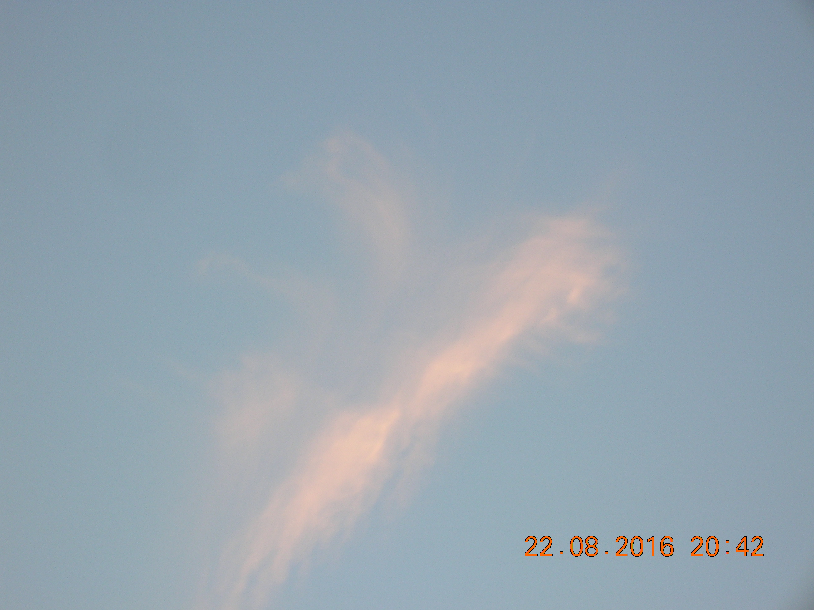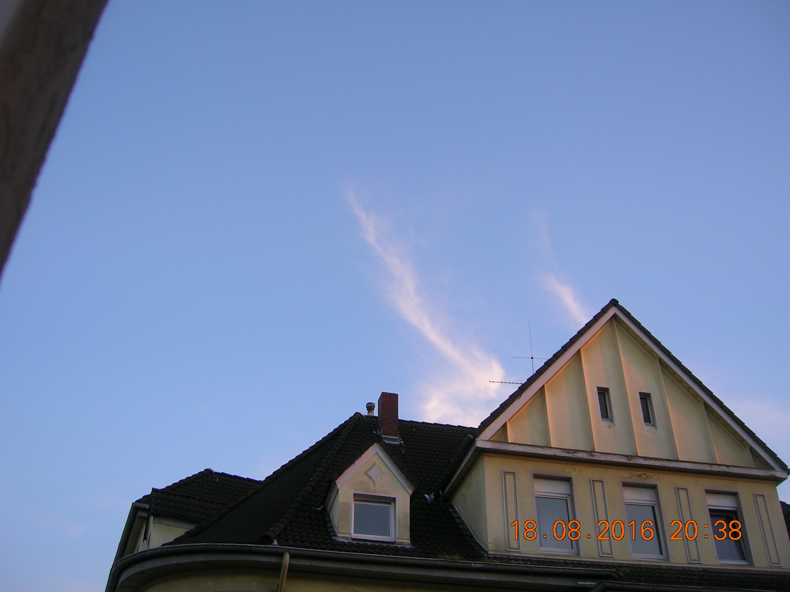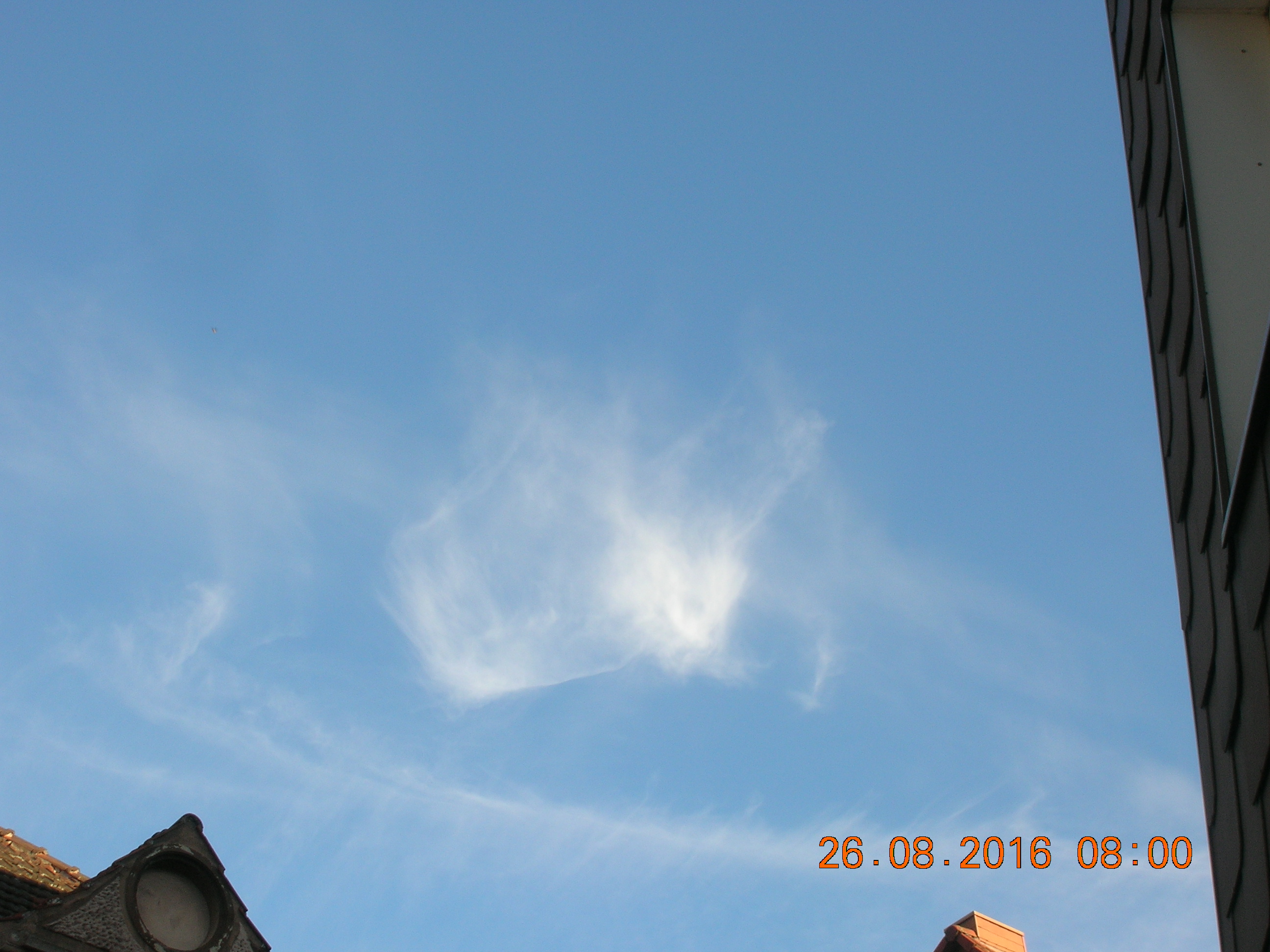 Mit ein bißchen Fantasie sieht man sehr deutlich den Engel in den Sylphen, und noch ein Foto von einem chemischen Kondensstreifen der sich aufzulösen beginnt.
