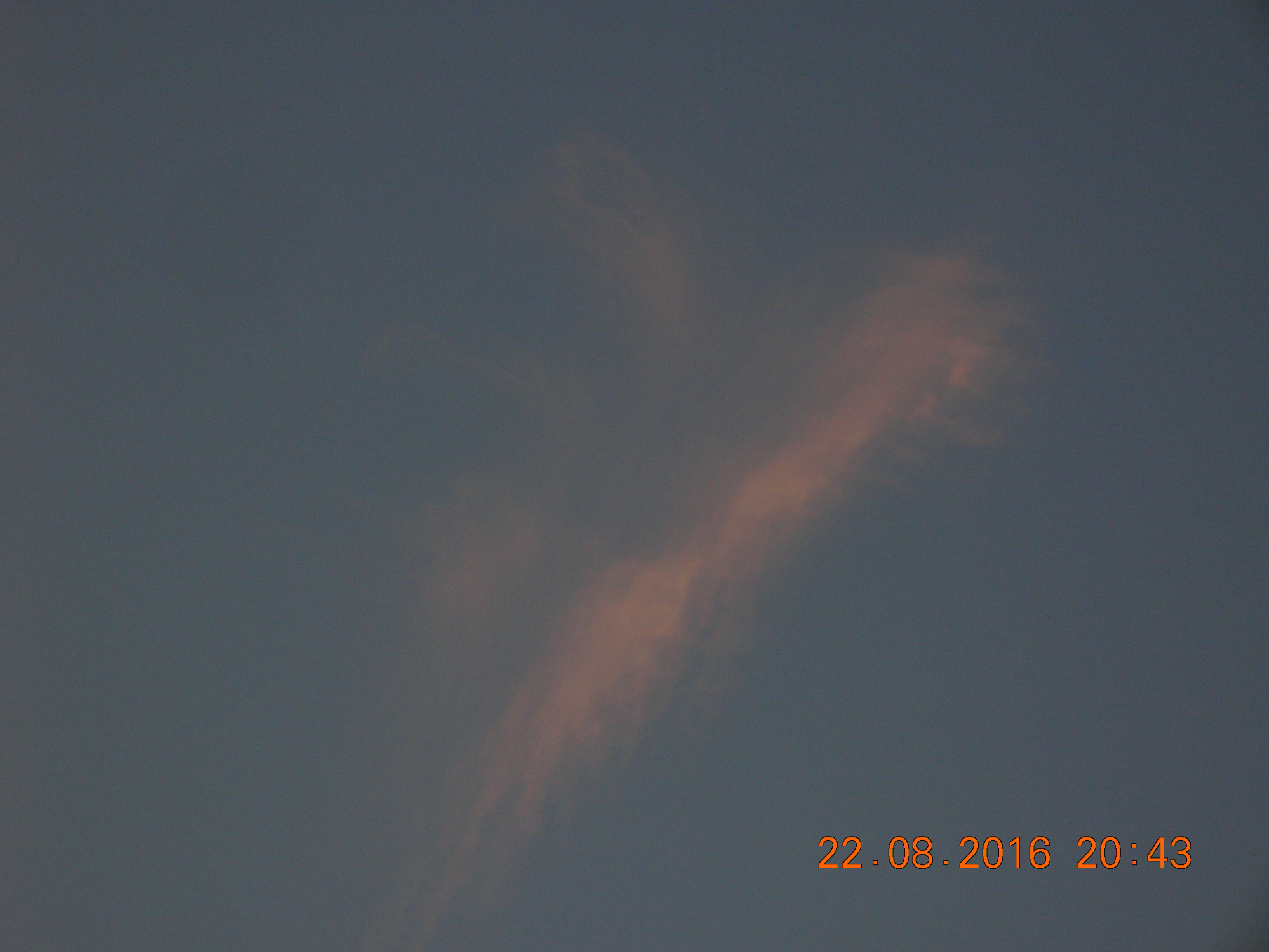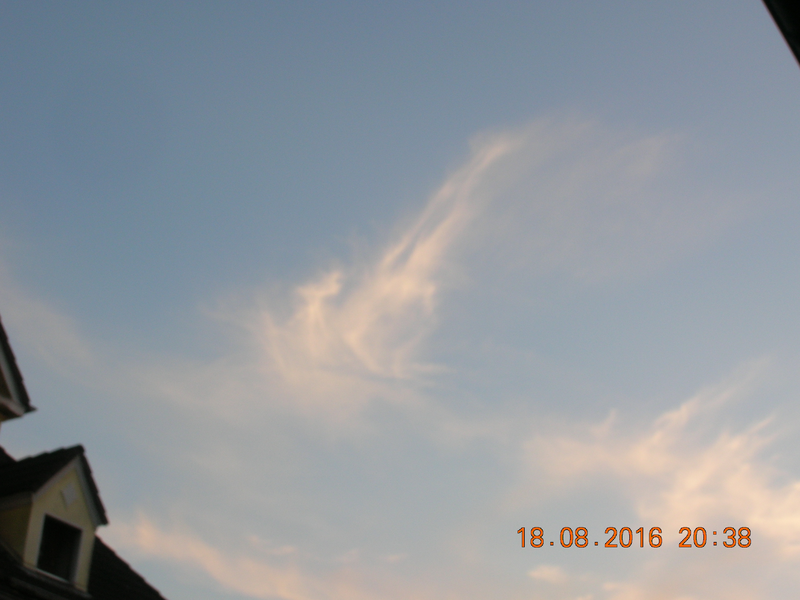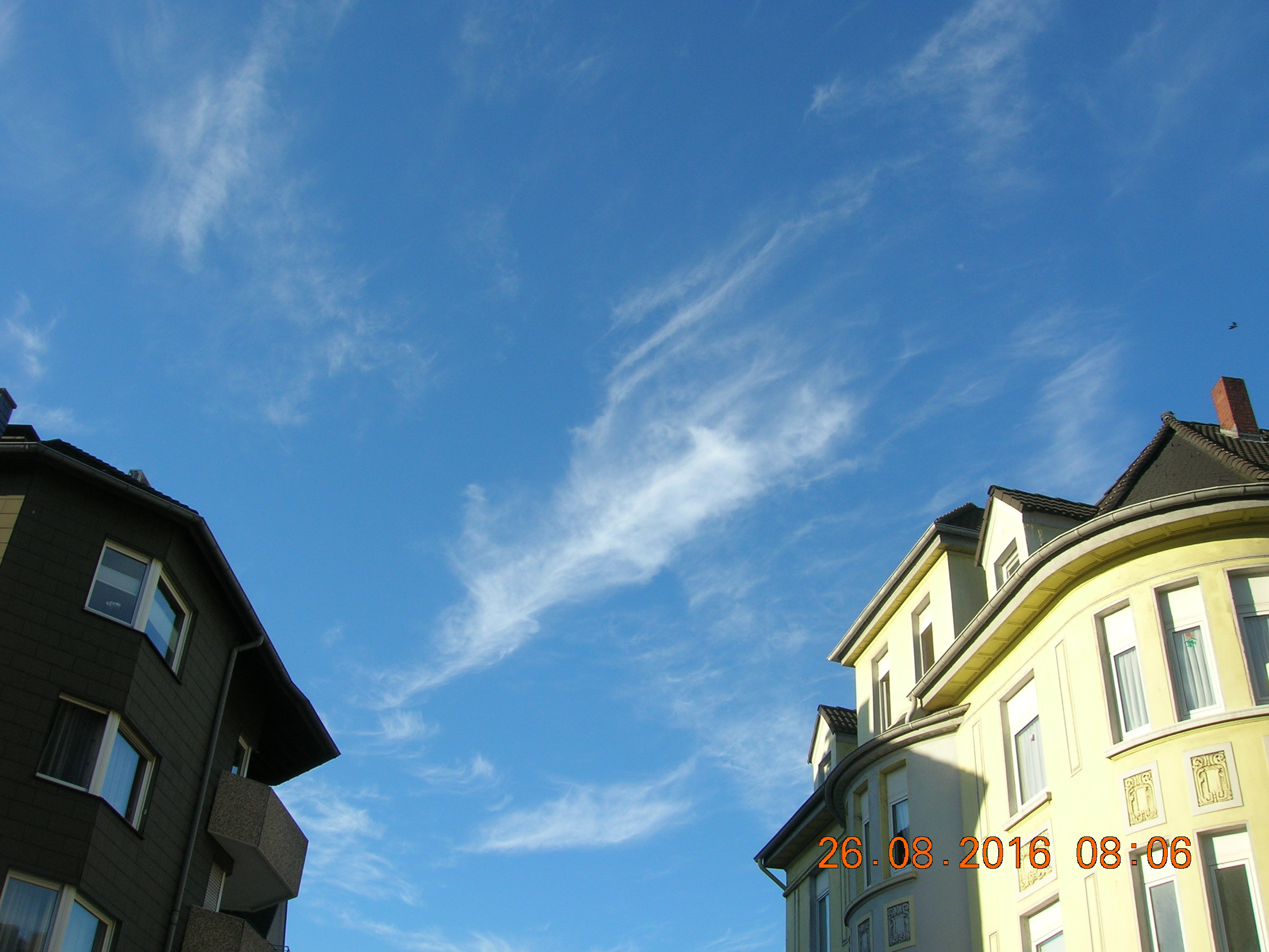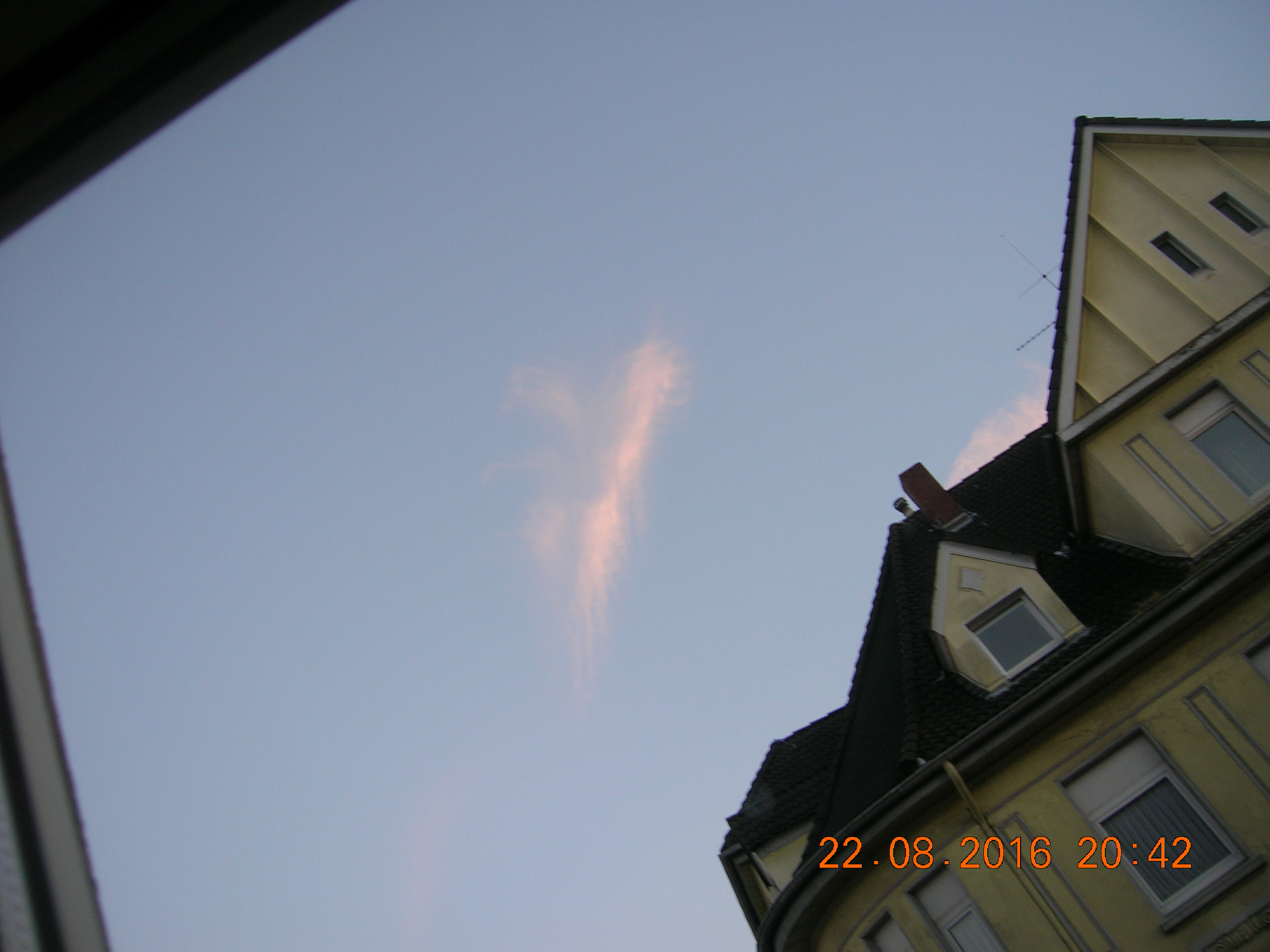 Mit ein bißchen Fantasie sieht man sehr deutlich den Engel in den Sylphen, und noch ein Foto von einem chemischen Kondensstreifen der sich aufzulösen beginnt.