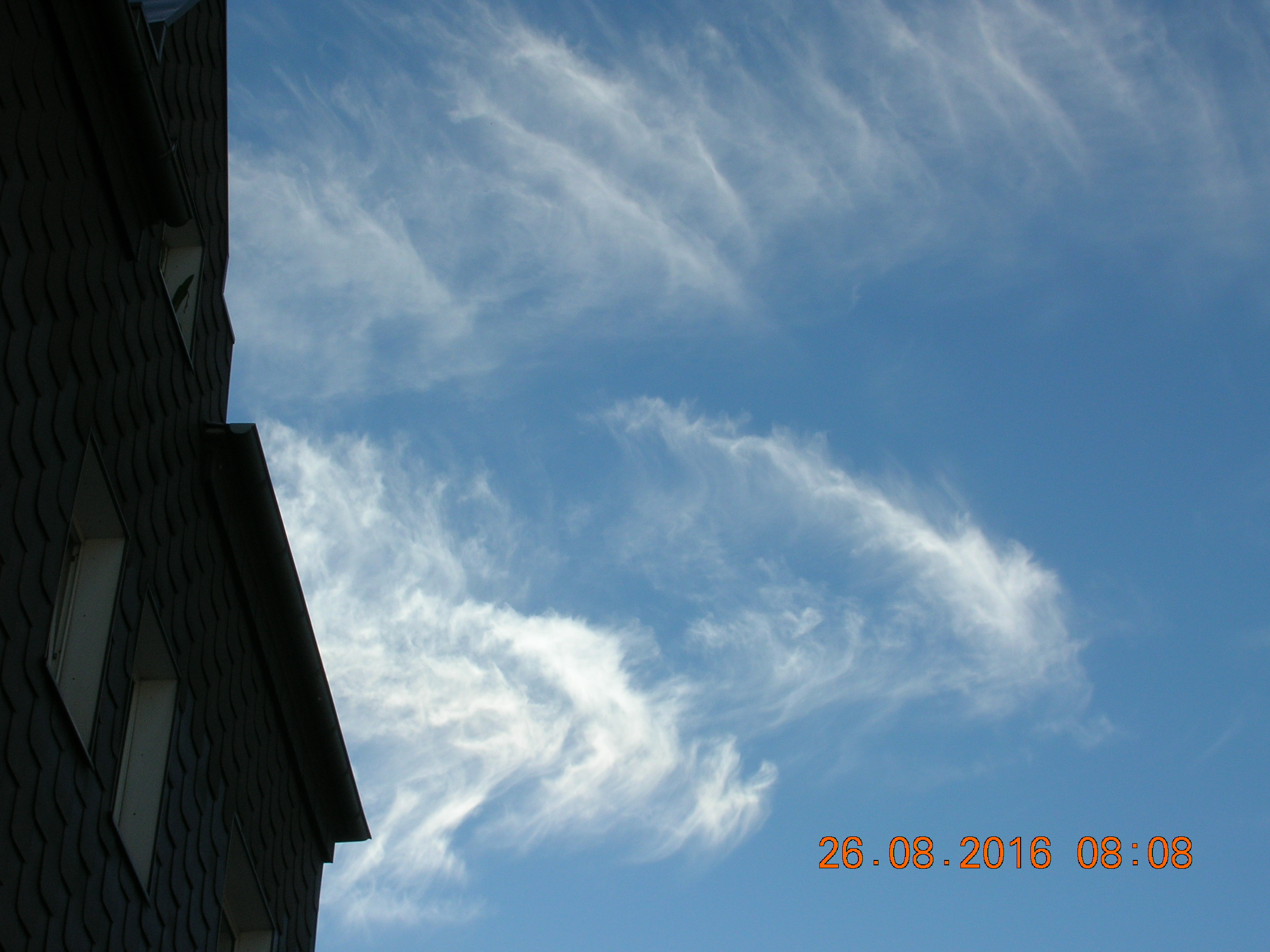 Mit ein bißchen Fantasie sieht man sehr deutlich den Engel in den Sylphen, und noch ein Foto von einem chemischen Kondensstreifen der sich aufzulösen beginnt.