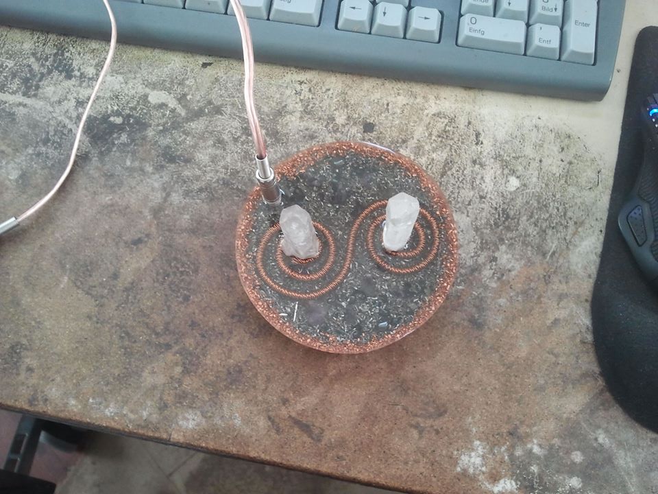 So liebe Leute, na dann schaut mal was ich hier habe. Dies ist ein Orgonit den man mit Frequenzen versorgen kann. Kurz und knapp, man schließt dieses Gerät an einem Frequenzgenerator oder gleich am besten, an einem DC Zapper an, speist dann Frequenzen durch, idealerweise Rechteckwellen/Square! Zum Beispiel 7.83 Hz, welche durch Blitze bei Gewitter entstehen, oder auch welches die auch unser Gehirn erzeugt. Bei durchgehenden Betrieb erzeugt dieses Gerät ein Feld aus wirbelnden Energien, oder besser gesagt elektromagnetischen Wellen, welche dann immer höher in den Himmel gelangen! Diese Wellen sind mit speziellen Messgeräten nachweislich messbar. Das erkenne ich zum Beispiel auch daran, das kleine Flugzeuge oder Tragschrauber ständig um den Aufstellungsort dieses Geräts ein paar Minuten umher kreisen, und dann wieder verschwinden von wo die hergekommen sind. Auch Tiere haben ein besonders empfindliches Gespür dafür. Man muss sich aber ein bisschen über Schumann Frequenzen informieren, zum Beispiel hier rüber: brainscanner.de/therapie/biblio/de/BS_Schumann.pdf