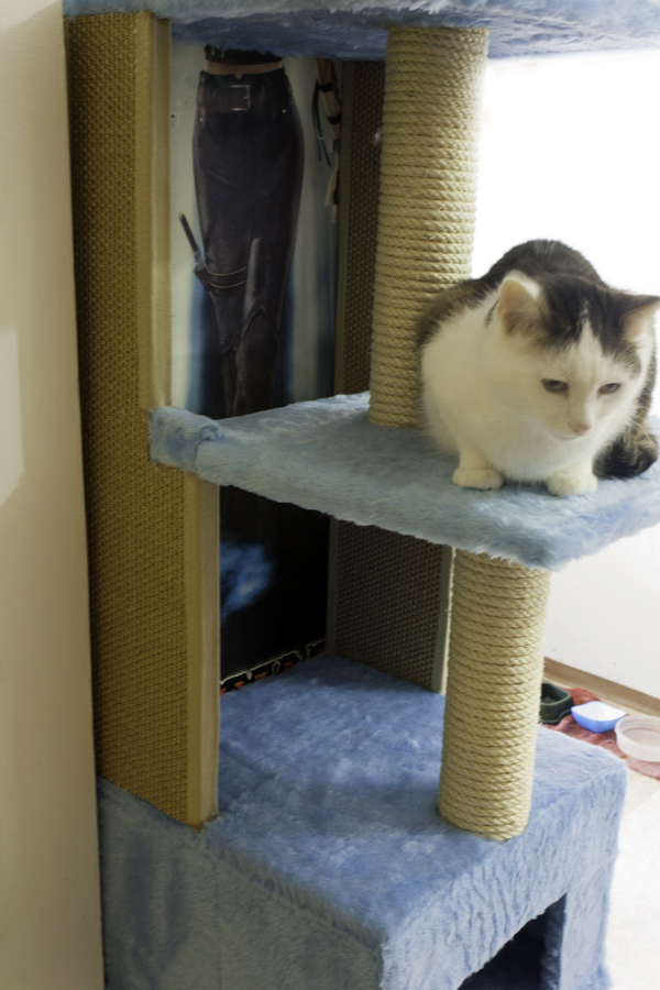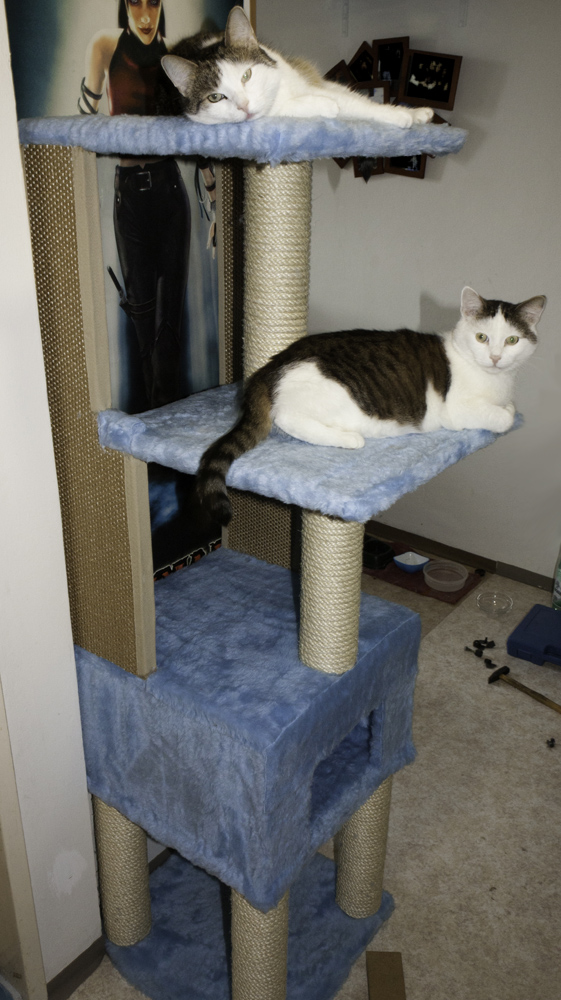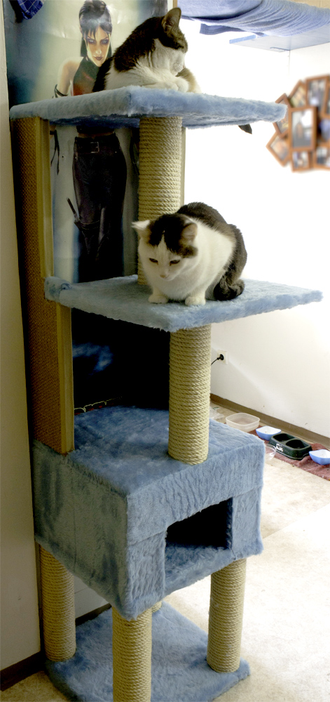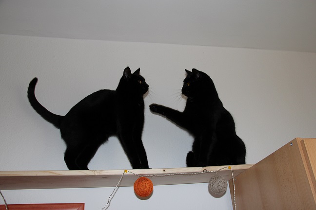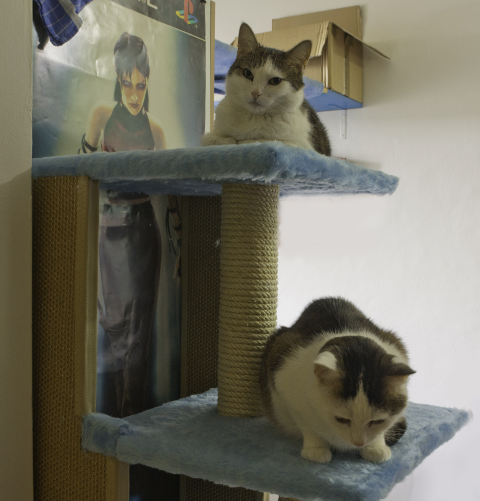 Hier noch ein paar Bilder des Kratzbaums den ich damals für meine kleinen gebaut habe - die Brücke sieht man auch teilweise im Hintergrund. Sieht jetzt aber alles anders aus da das auch in der alten Wohnung war