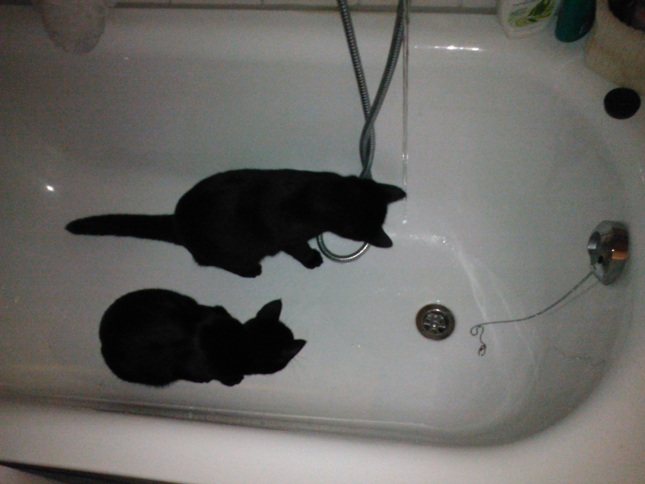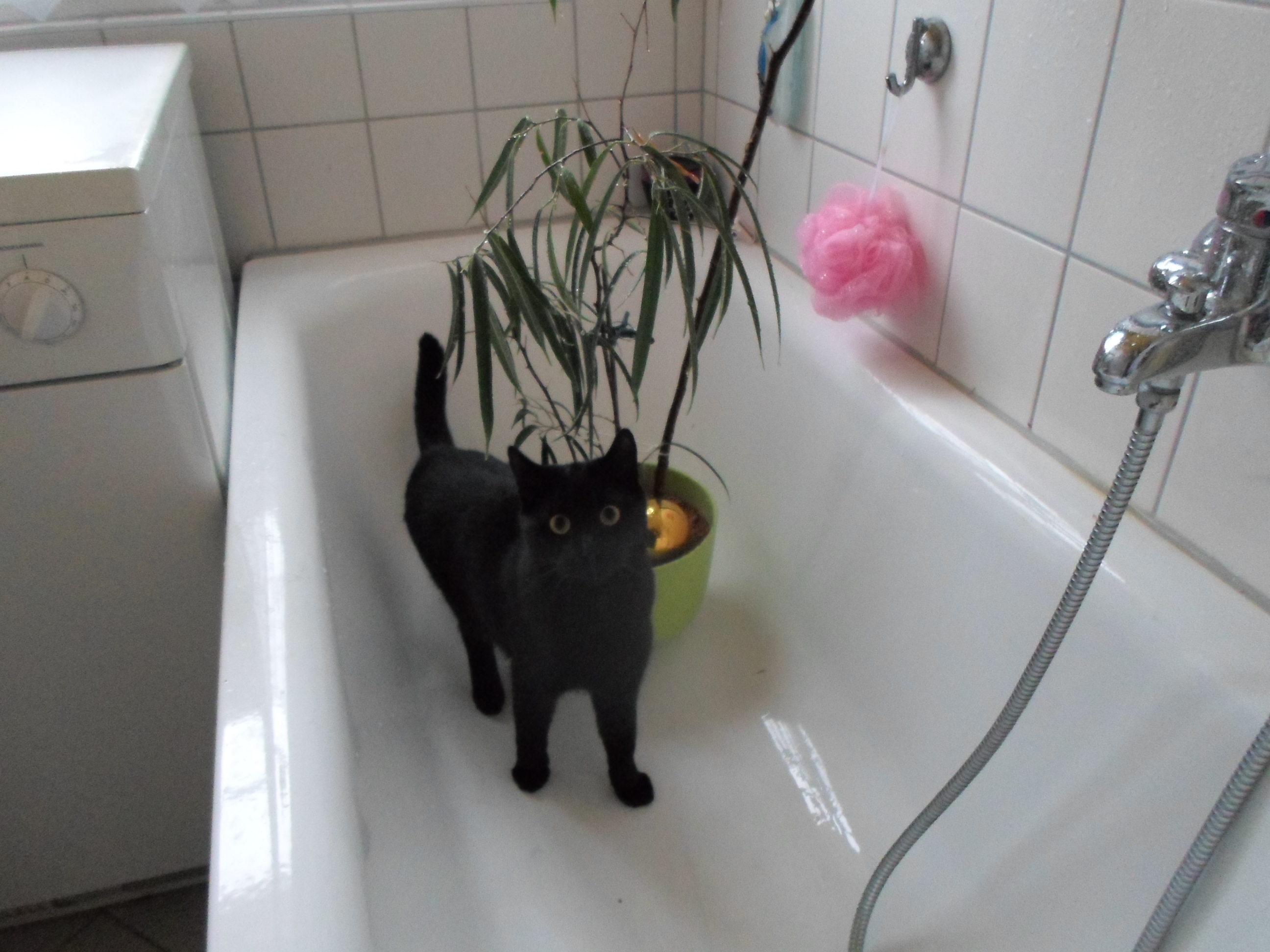 4. Bild in der Badewanne -> das könnte die Schwarzkatze hier bei uns zuhause sein. Die ist nämlich so eine richtige Abenteuerkatze für die es kein "geht nicht" gibt. Die kommt überall hin, überall rauf und muss auch überall rein und dazu