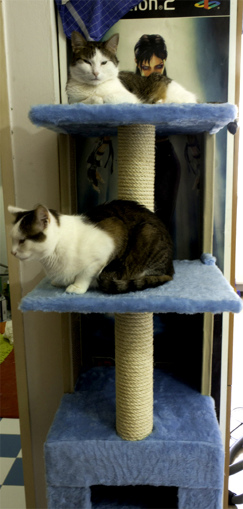 Hier noch ein paar Bilder des Kratzbaums den ich damals für meine kleinen gebaut habe - die Brücke sieht man auch teilweise im Hintergrund. Sieht jetzt aber alles anders aus da das auch in der alten Wohnung war