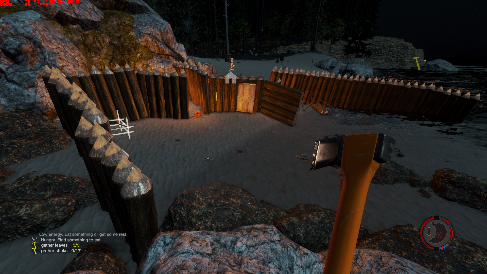 Das machte ich die nächsten zwei Tage. Zwischendurch traf ich auf einige Gestalten, die Ähnlichkeit mit dem Dieb meines Sohnes hatten. Voller Wut metzelte ich sie nieder. Irgendwann traf ich auf einen Stand mit einer Höhle. Hier lasse ich mich erstmal nieder, dachte ich mir. Die Tage vergingen und ich baute mir mein kleines Reich auf.. zwischenzeitlich gestört von kleineren Attacken dieser Wesen..