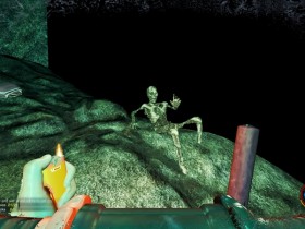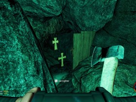 Zwei von den halbnackten Höhlenwachen begrüssen mich und machen direkt die Bekanntschaft mit aus dem Meer gefischten Boozes, allerdings auf der Haut und nicht im Magen. Sie sterben offensichtlich an Verbrennungen und so ist der Weg frei zu dem mit Kreuzen gespickten Zaun, der einen Abzweig der Höhle absperrt.