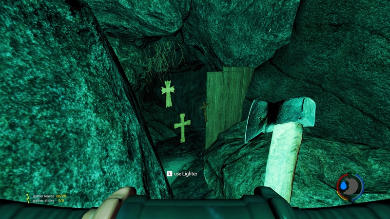 Zwei von den halbnackten Höhlenwachen begrüssen mich und machen direkt die Bekanntschaft mit aus dem Meer gefischten Boozes, allerdings auf der Haut und nicht im Magen. Sie sterben offensichtlich an Verbrennungen und so ist der Weg frei zu dem mit Kreuzen gespickten Zaun, der einen Abzweig der Höhle absperrt.
