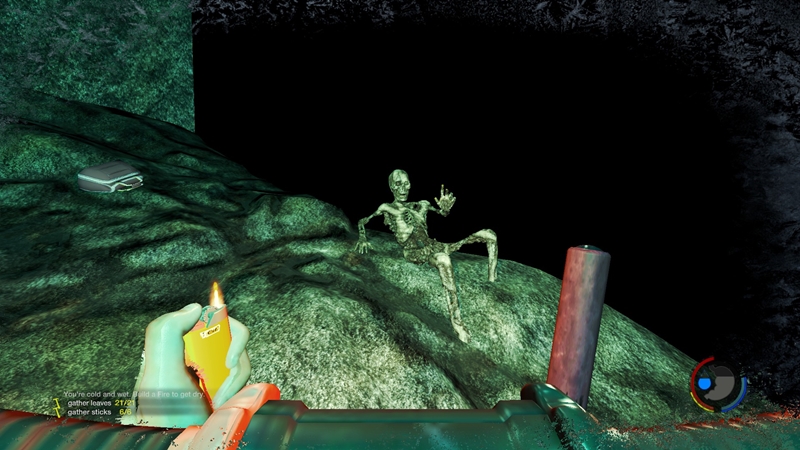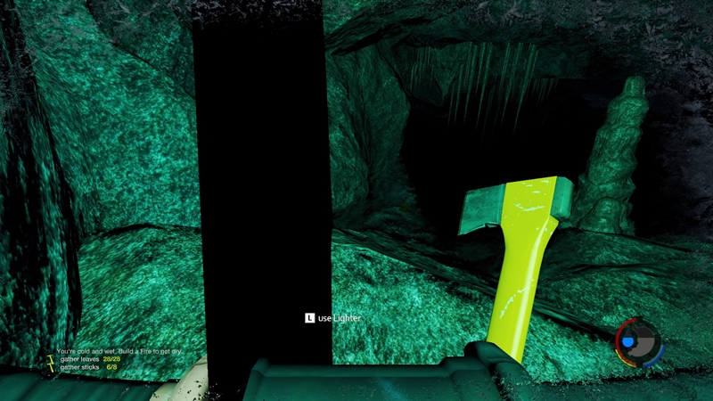 In der Zwischenhöhle -die voll ist mit Tropfsteinen- gibt es nicht viel zu erkunden. Es liegen reichlich Flares herum und ich nutze die Zeit um mich an einem Feuer aufzuwärmen, bevor es die nächste Etappe entdecken zu gilt.
