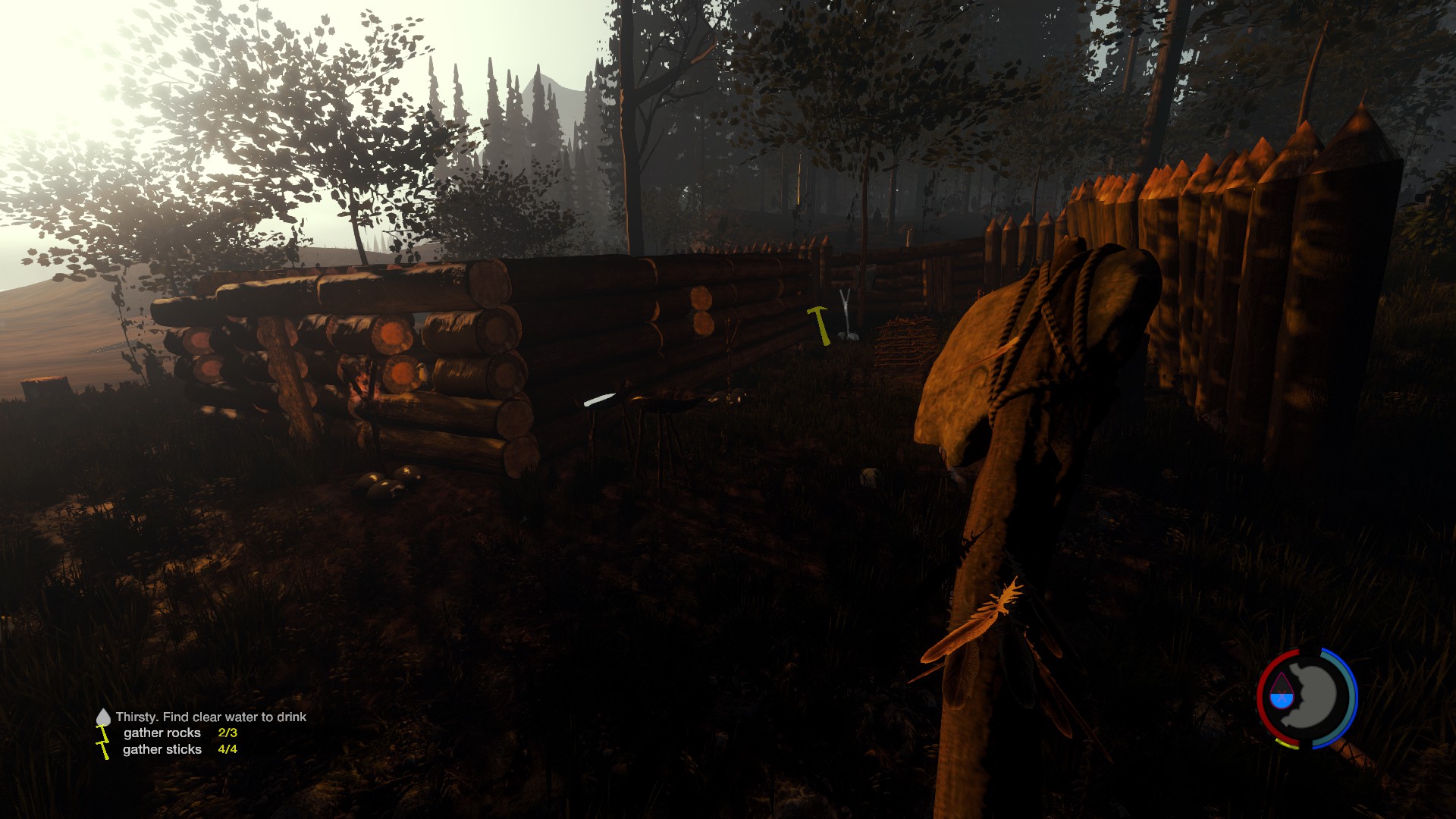 Laufe eine kleine Weile umher , finde einen (meiner Meinung nach) geeigneten Platz um ein Haus zu bauen , hab grad diese wunderbaren Blaupausen fertig aufgestellt, die ersten 2 Bäume gefällt (mir, haha xD ) ..Und was passiert?
