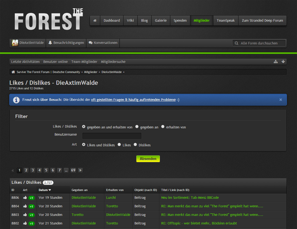 Viele fragten bereits ob es sowas gibt, ich habe oft überlegt ob eine Art Übersicht nicht zumindest anderwertig ausgelesen werden kann und nun ist sie mittels eines Plugins da: Die Übersicht der Likes in der man erhaltene, aber auch vergebene (!) Likes gesammelt einsehen kann.