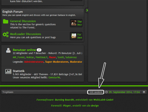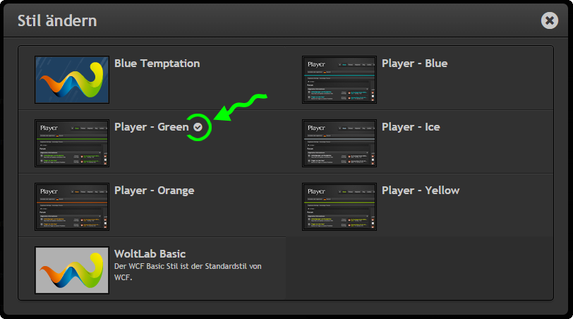 Stile sind mit anderen Worten einfach Designs mit denen man das Forum mehr oder weniger anders aussehen lassen kann. In unserem Forum gibt es zusätzlich noch das Player-Paket neben 2 Standarddesigns, wovon das "Player Green" Schema standardmäßig für alle Besucher definiert ist.